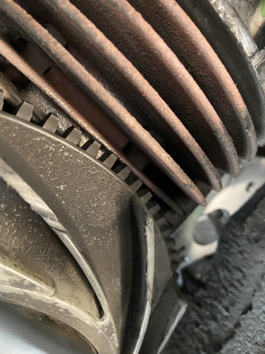 Jetzt bin ich ein Schritt weiter. Wenn ich jedoch das Luftleitblech festschraube schleift das lüfterrad am Blech. Die Verzahnung wie auf dem Bild zu sehen sitzt auch nicht. Was habe ich übersehen?