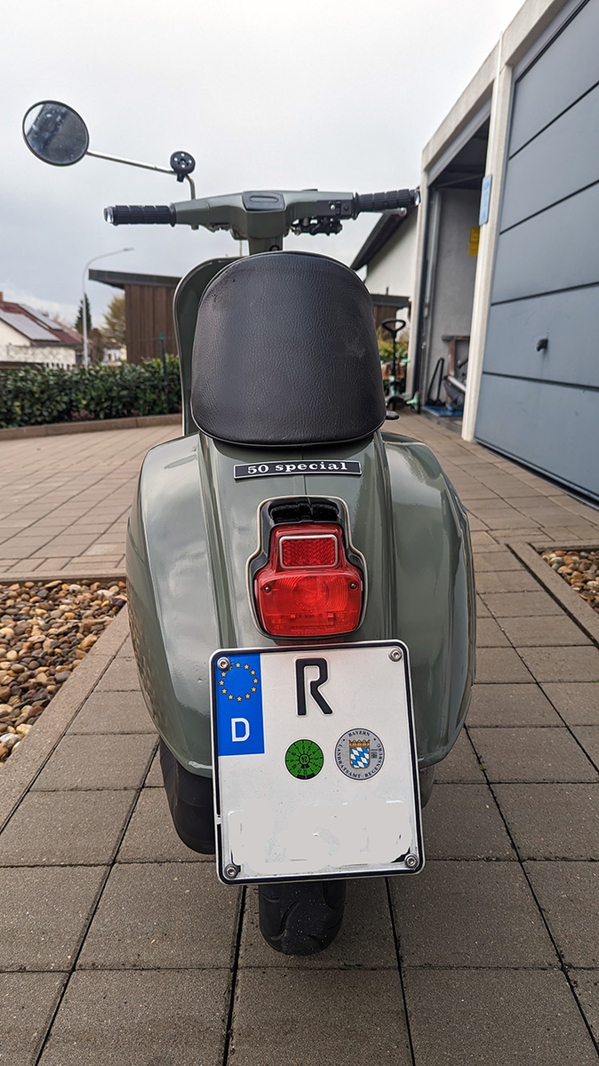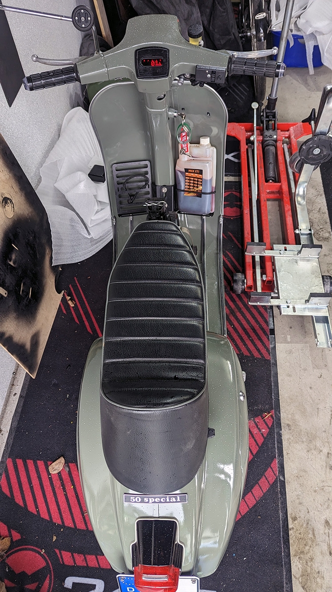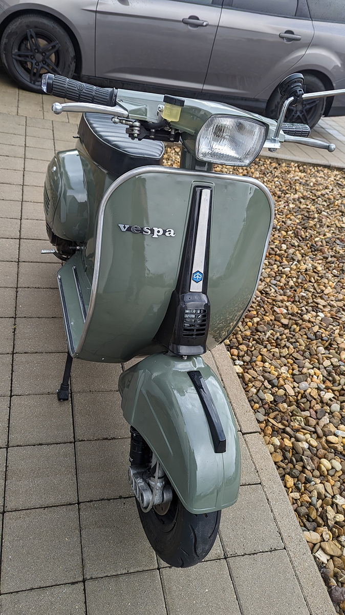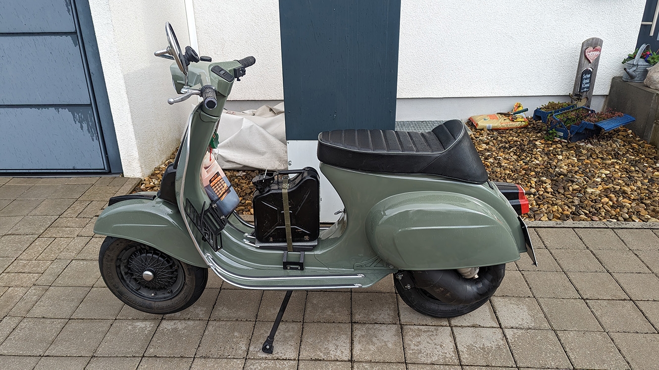 Die Vespa wurde in RAL 7009 Grüngrau lackiert.