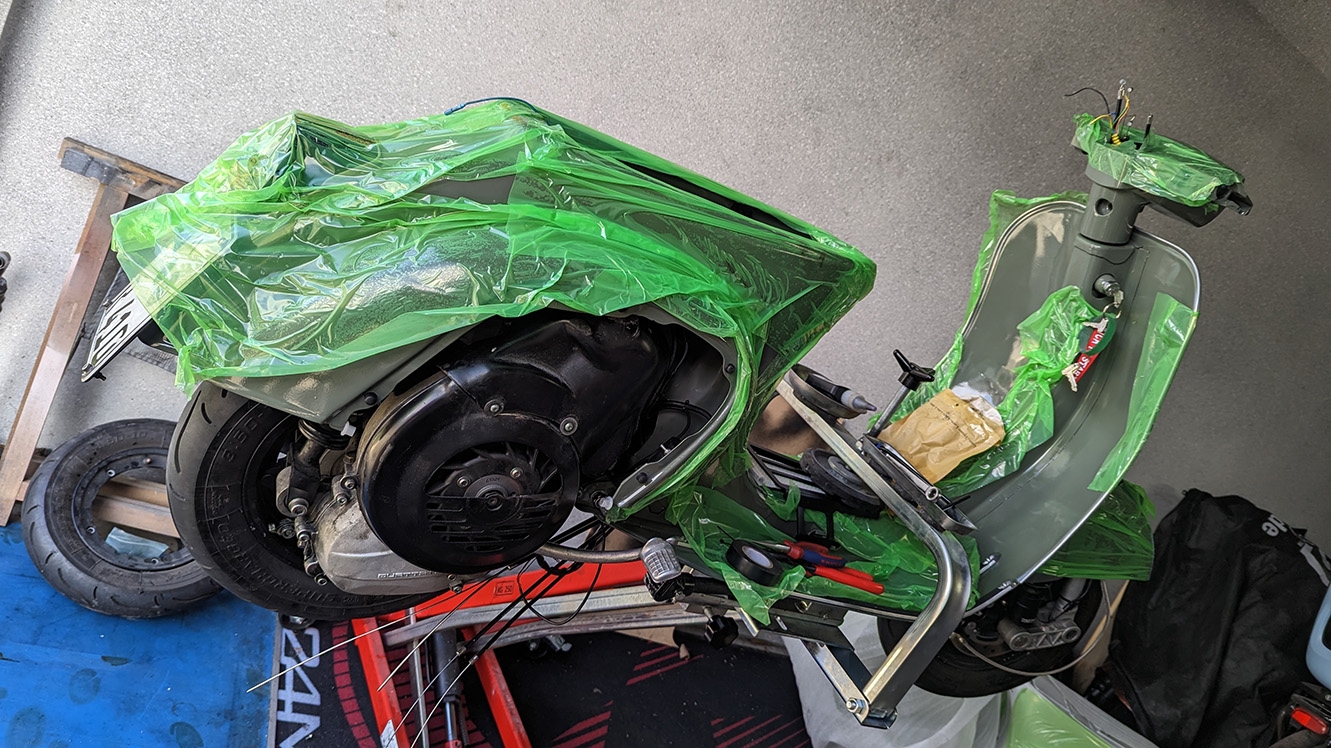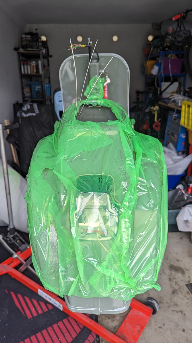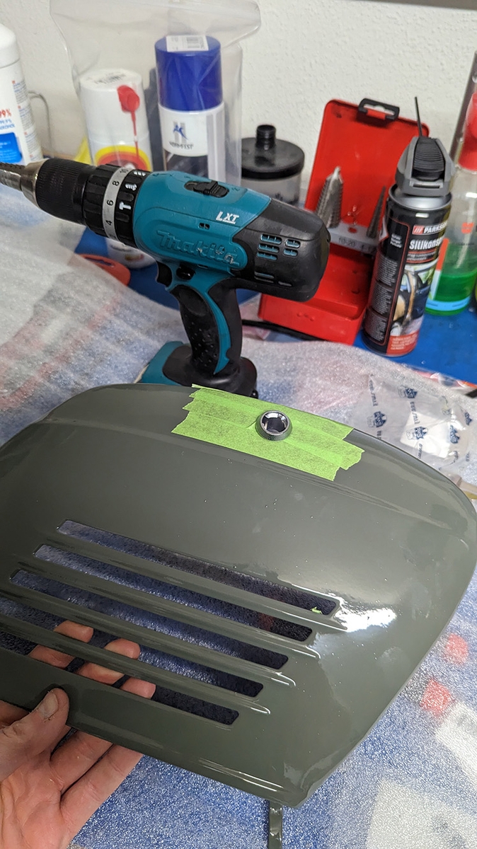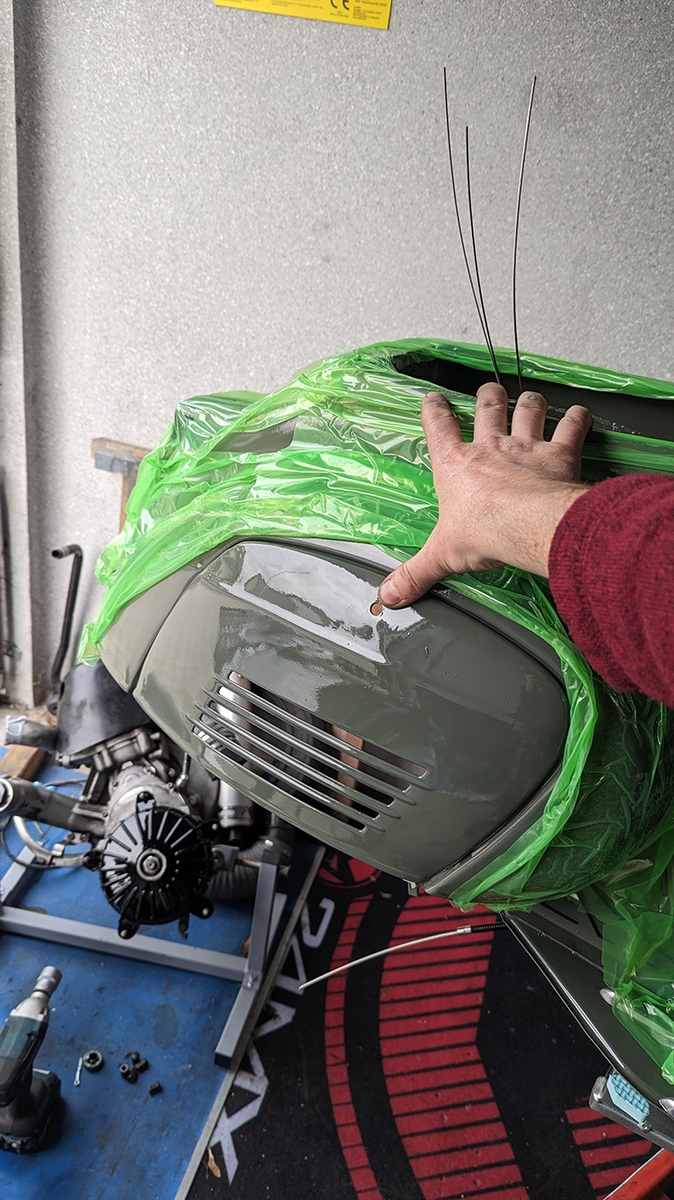 Die Vespa wurde in RAL 7009 Grüngrau lackiert.
