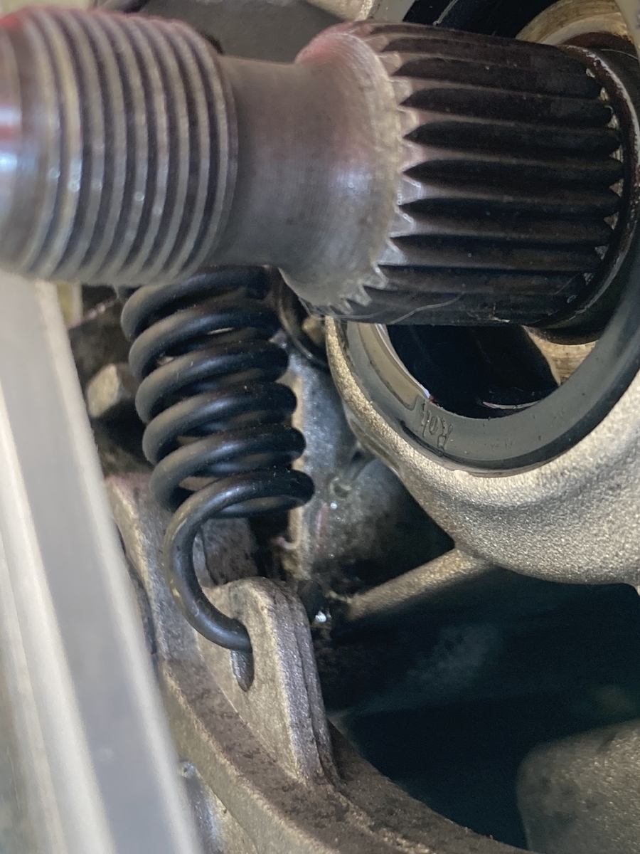 Die Rückholfeder für das Gasgestänge ist eigentlich eine simple Zugfeder, die auf der einen Seite an dem Anlenkhebel des Gasgestänges eingehängt ist (dort wo auch der Zug eingehänt ist) und am anderen Ende hängt die an einem Blech mit einer Bohrung.