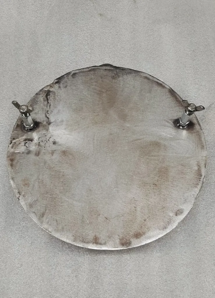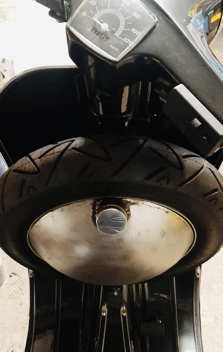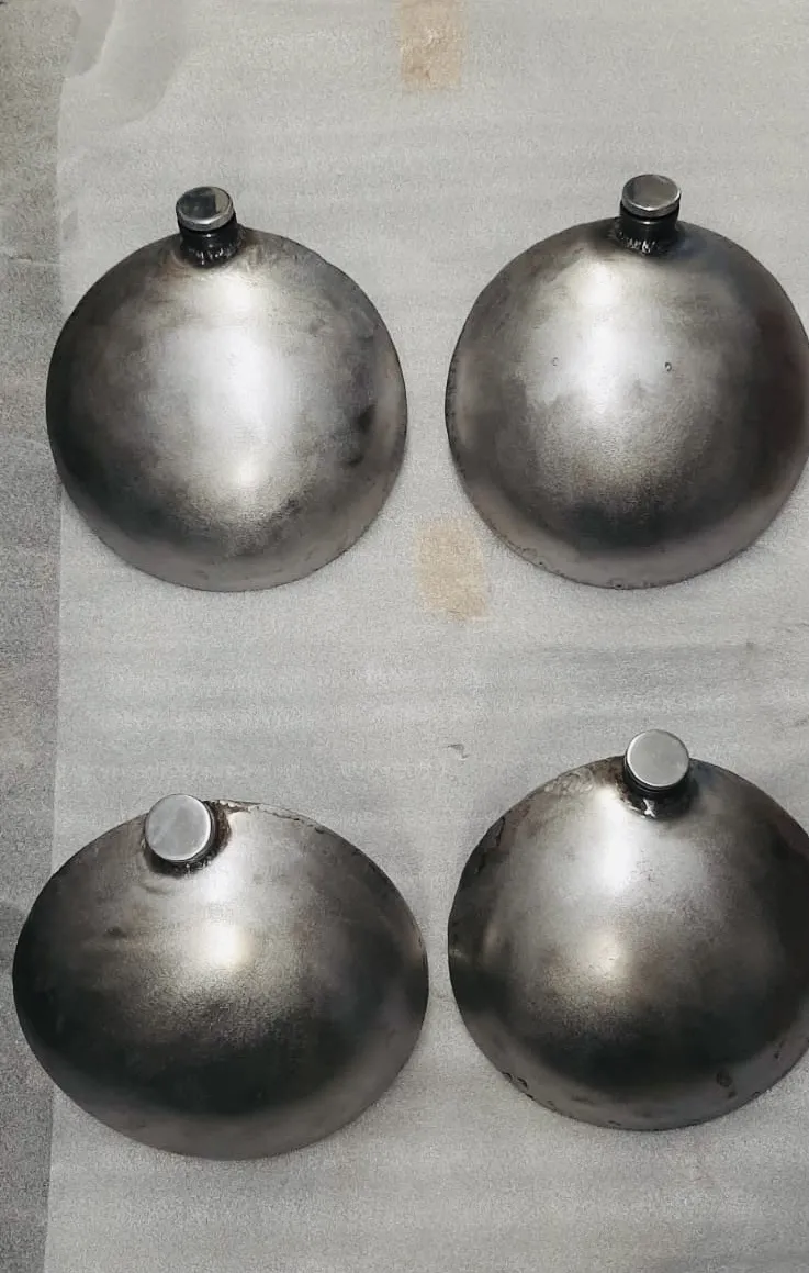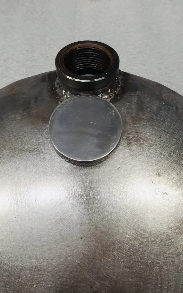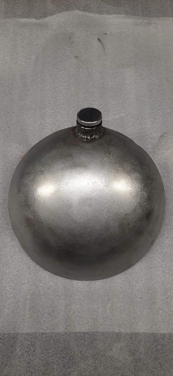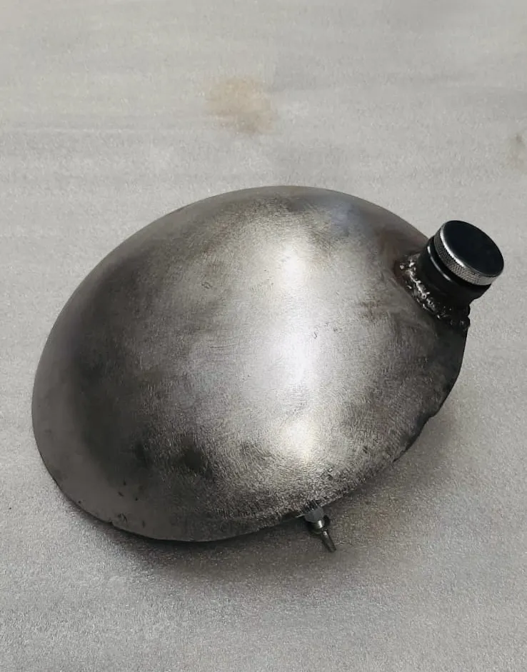Vier Tanks sind fertig, innen mit Zweitaktöl ausgeschwenkt, aussen eingeölt und vor allem dicht. Sie passen an 10Zoll-Ersatzräder und werden mittels zweier angeschweißter Gewinde und Flügelschrauben im Ersatzrad von hinten befestigt.