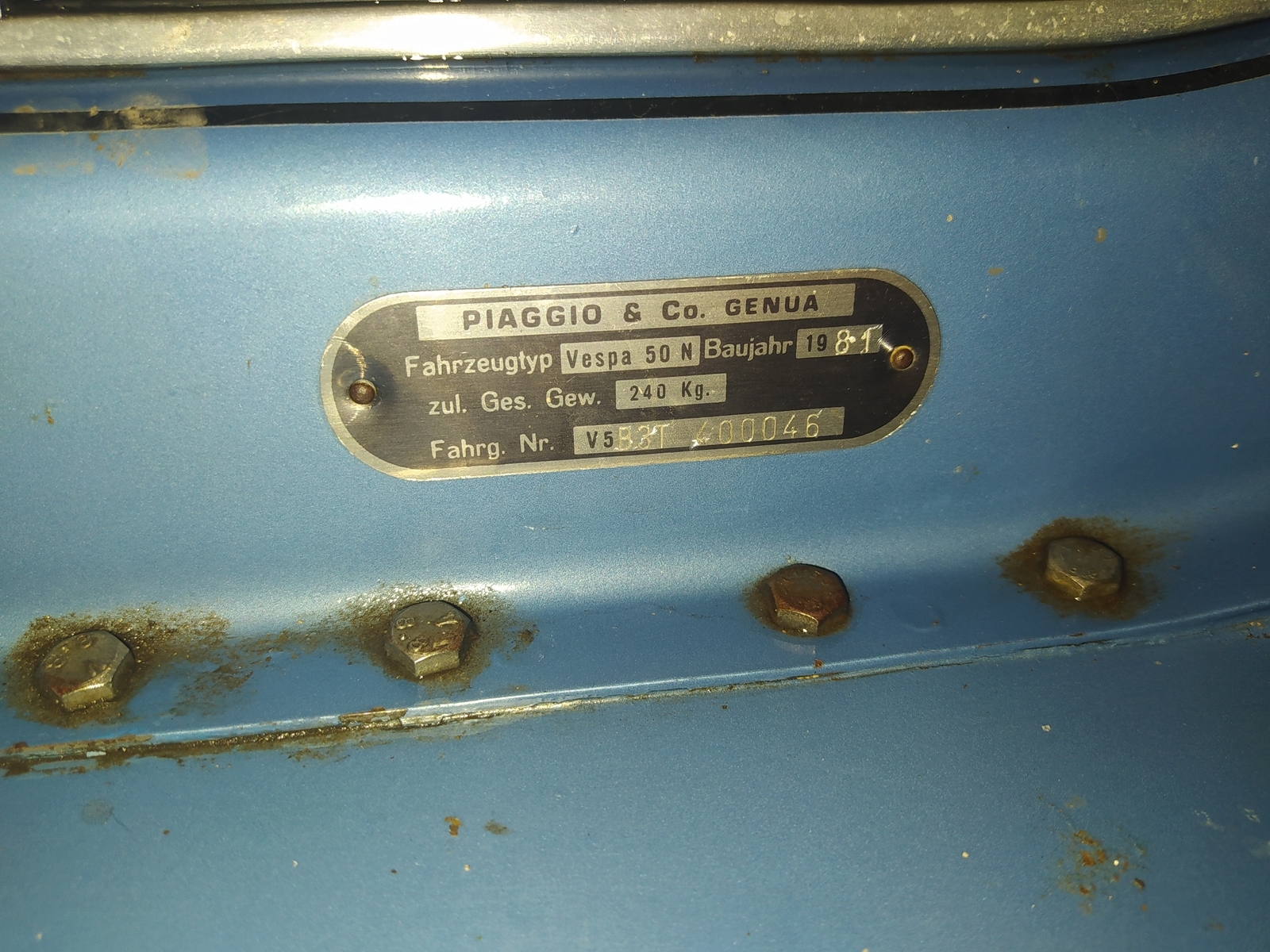 Ich bin zufällig an eine Vespa 50N Bj 80 getroffen welche ich bekommen habe.