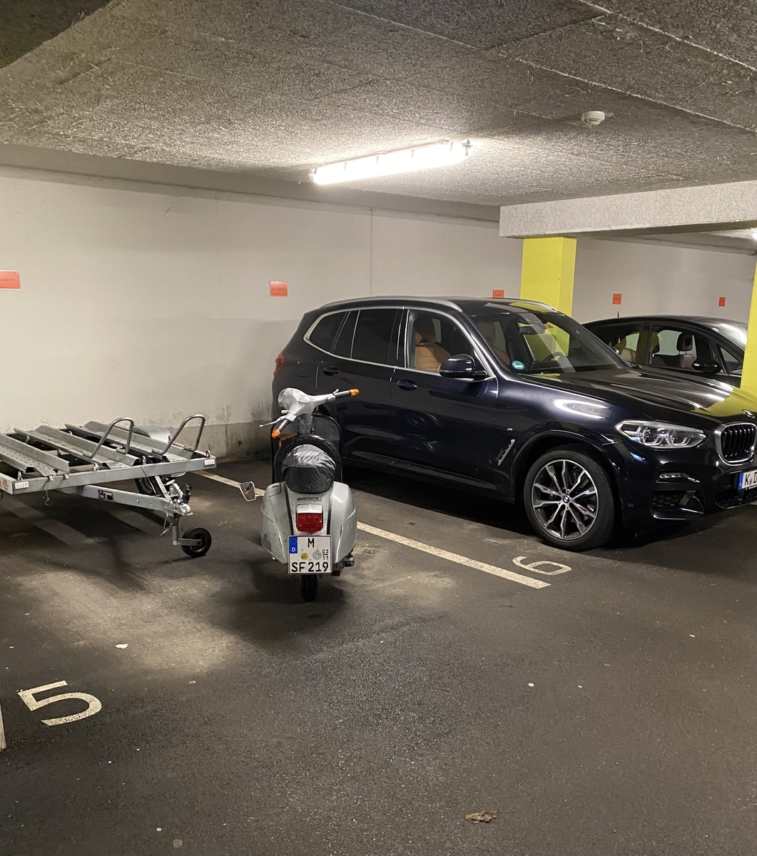 Du kannst zu mir auf den Hänger drauf. Zur Not passen sogar drei Vespas drauf.