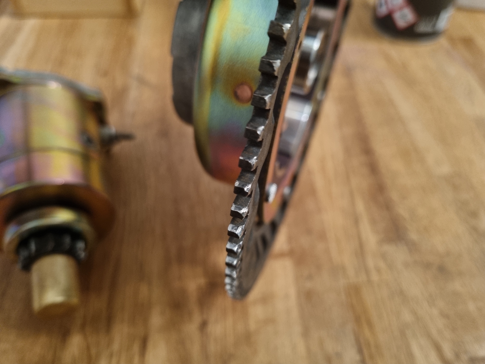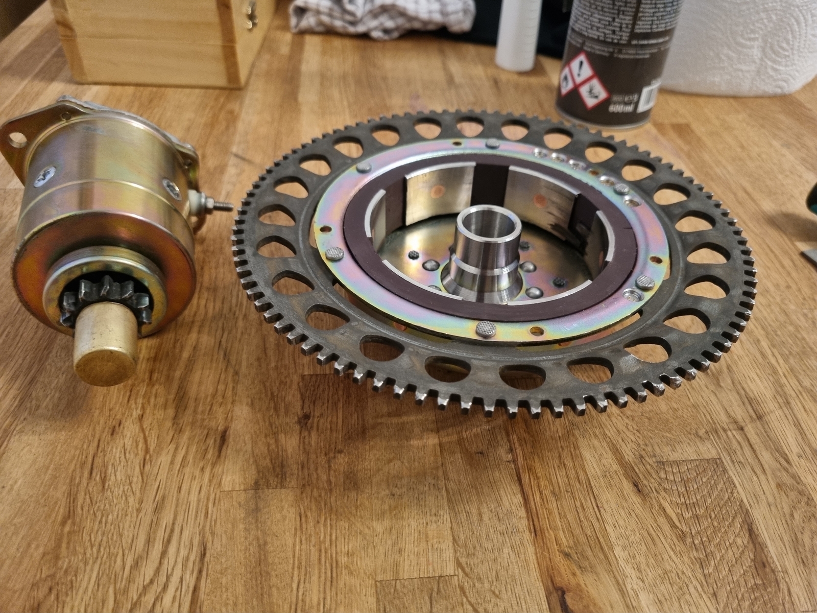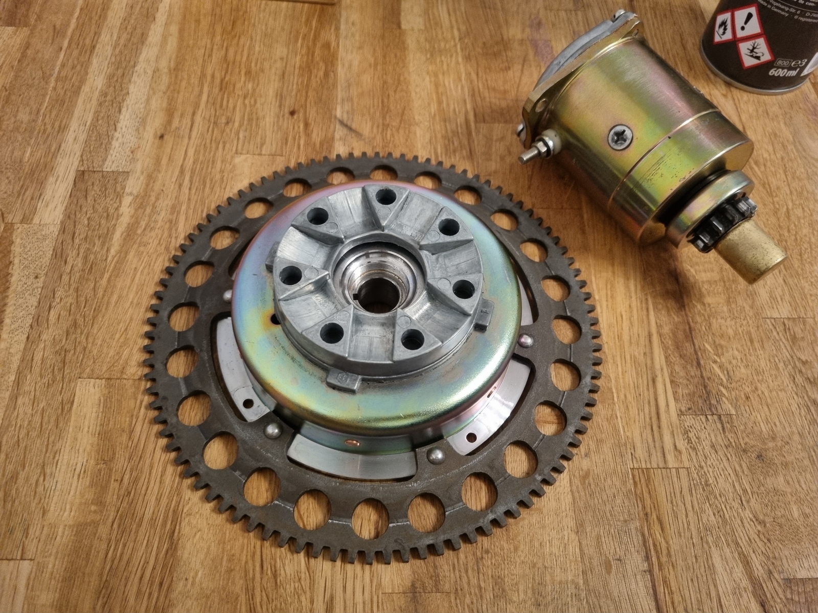 Ich habe hier gelesen das es an den Nieten des Polrades liegen kann aber ich bin mir da nicht so sicher. Ich habe am Zahnkranz des Polrades starke Abnutzungsspuren entdeckt. Kann es sein das der Anlasser an dem Zahnkranz schleift und diese schlagenden Geräusche verursacht? Bilder von dem Zahnkranz hänge ich an.