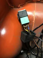 Dann natürlich den Anschluß an die Blinkerspule, damit meine Tröte vorne direkt über die Blinkerspule versorgt wird über den Schließer (ich muß mal in den alte Bestellungen kramen, was das für ein Schalter von Garbor ist...)