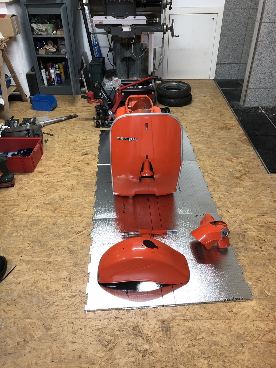 Wenn die Penner von Piaggio nicht damals so eine bescheuerte Lösung umgesetzt hätten, daß der Ständer ständig gegen das Trittblech knallt, könnte ich jetzt sofort mit der Konservierung starten.