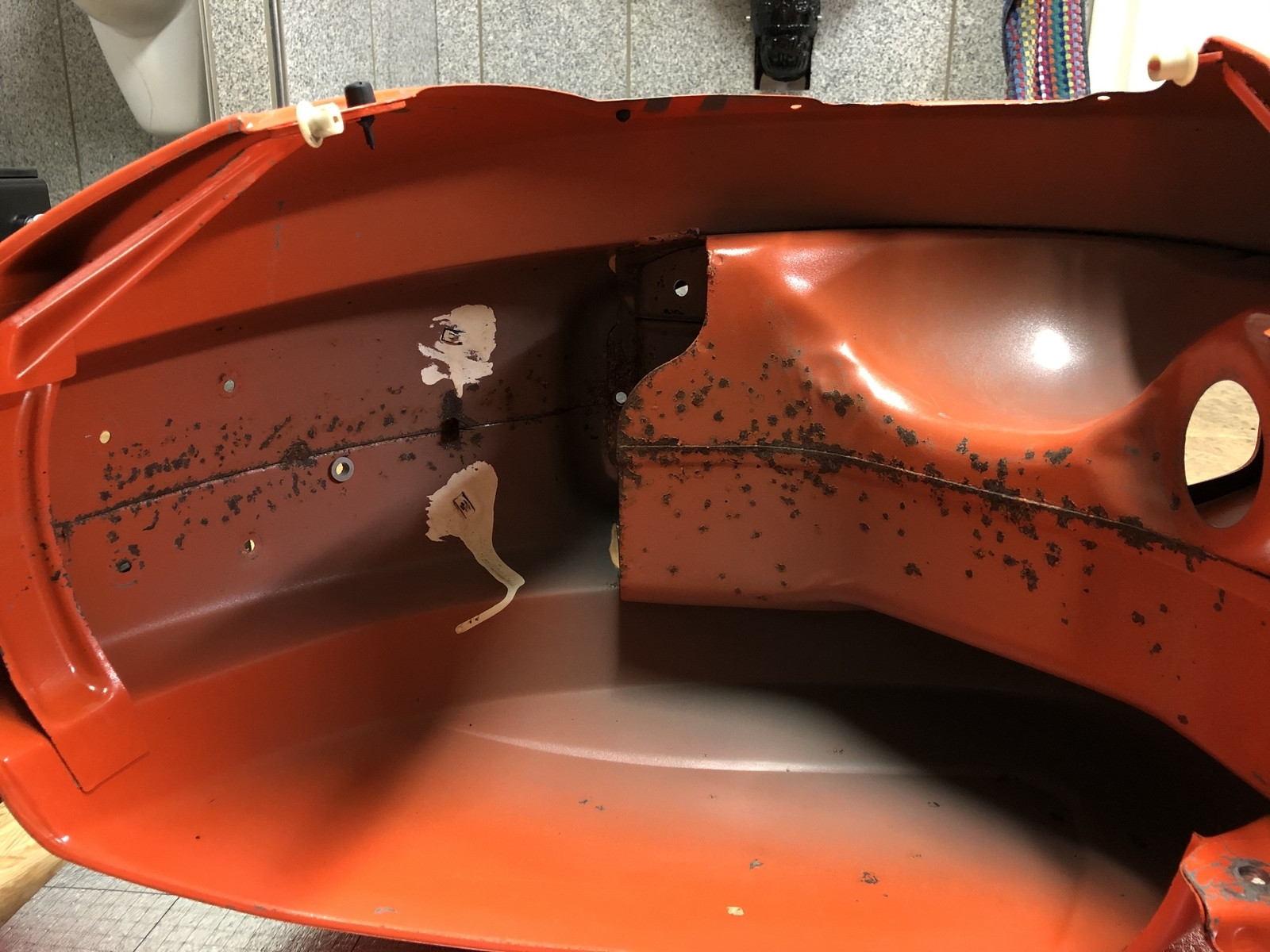 Interessant wird es unter dem Rock. Also ich bin jetzt keiner, der ständig alte Wespen zerlegt, aber rein von den Bildern und Filmchen im Netz und aus dem Forum her ist das hier nicht schlecht, was Rost angeht: