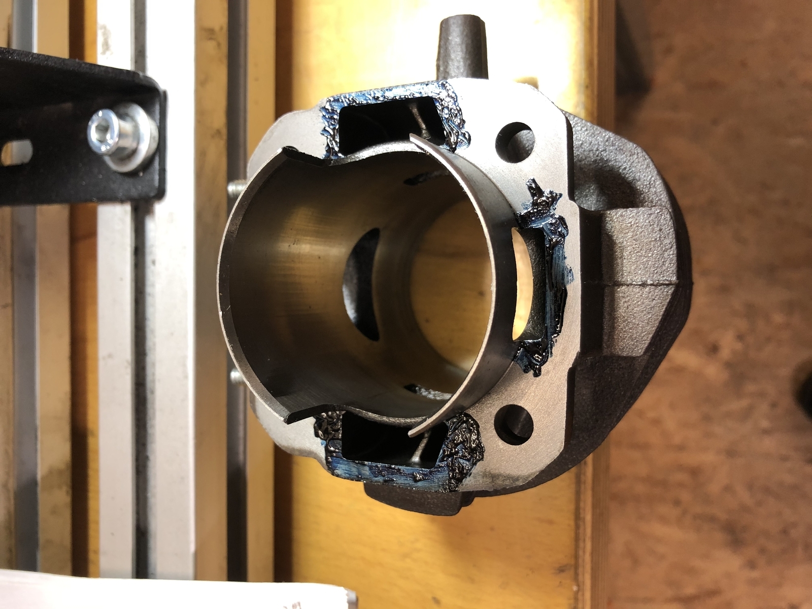 Auf der Ape war der Zylinder ja eine zeitlang drauf, aber nur gestöpselt. Die Überströmtaschen original und die Tasche für den Boostport gab es gar nicht, da pfiff es so um die Ecke durch.