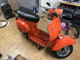 So, nun könnte man aufsitzen, wenn der Motor drin ist und läuft und ich versau mir die schöne, aufbereitete Lackfläche nicht. Das Paket mit der Zündung ist verschickt, ich hoffe, ich kann morgen nach der Arbeit den Motor fertig machen.
