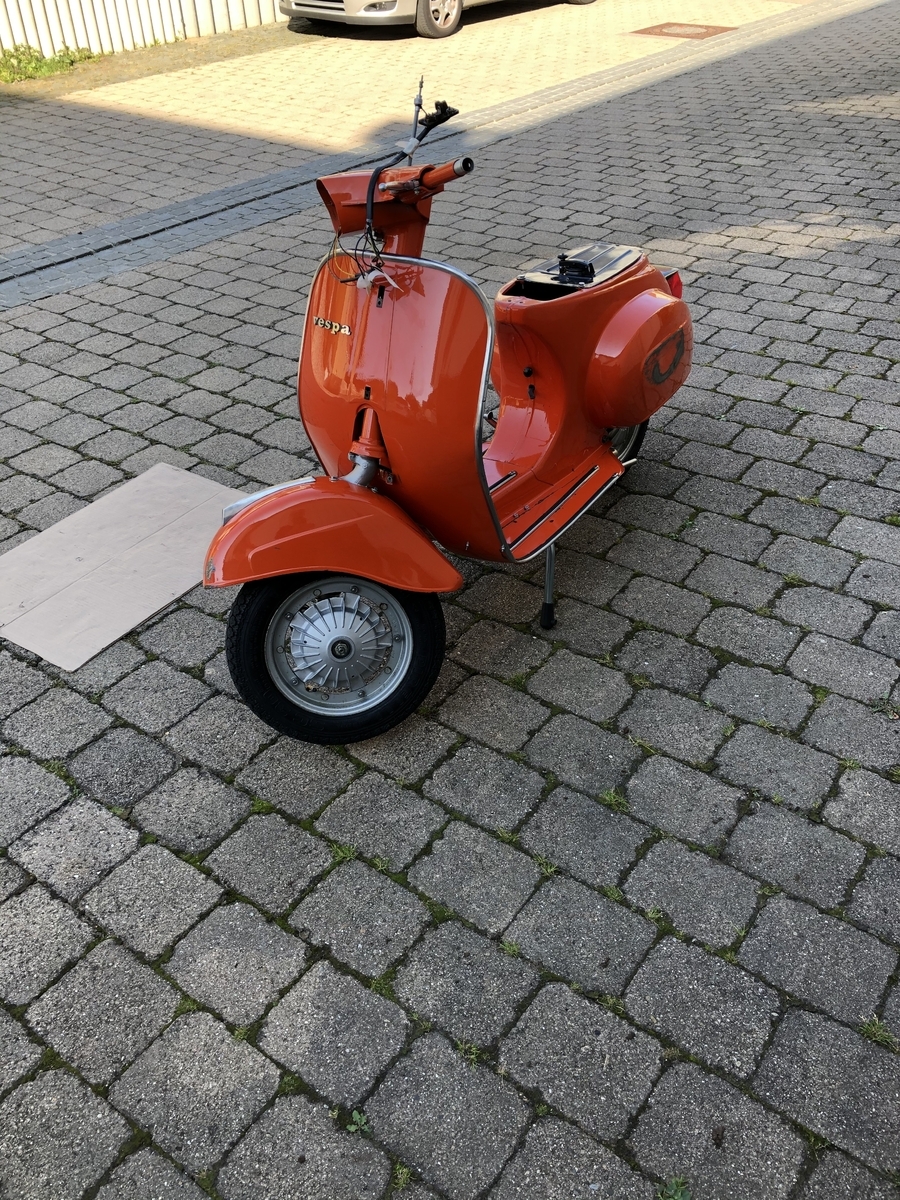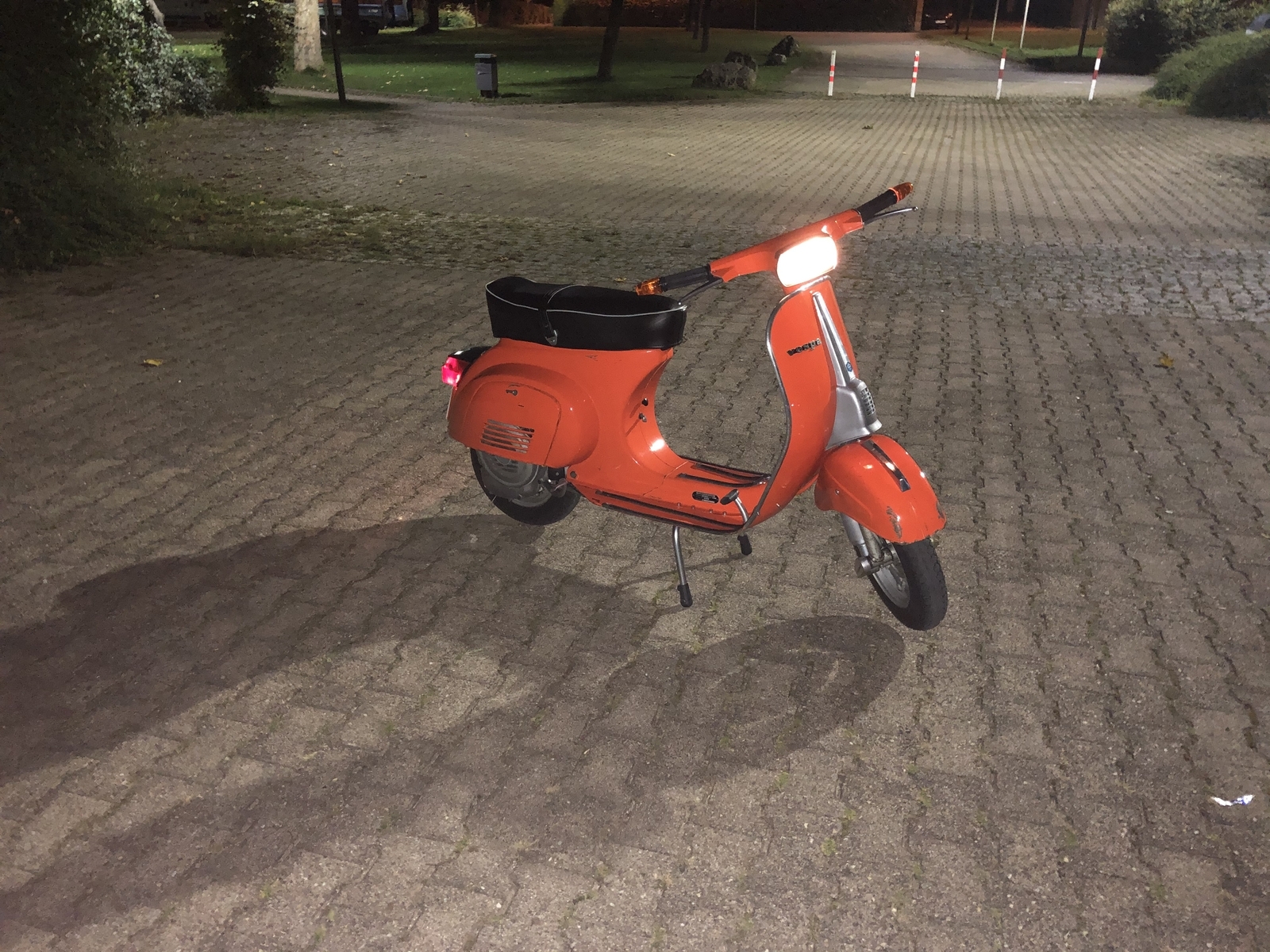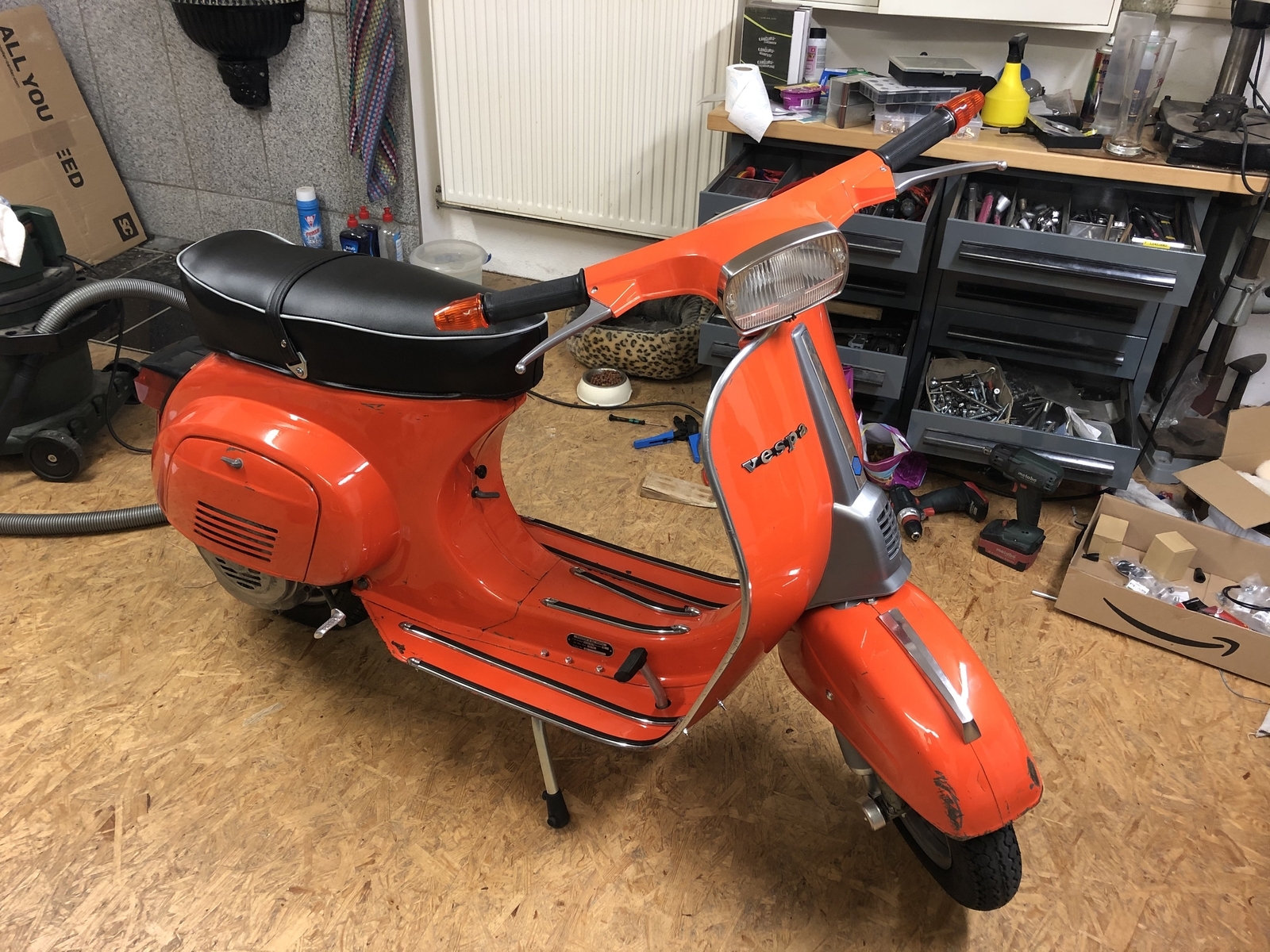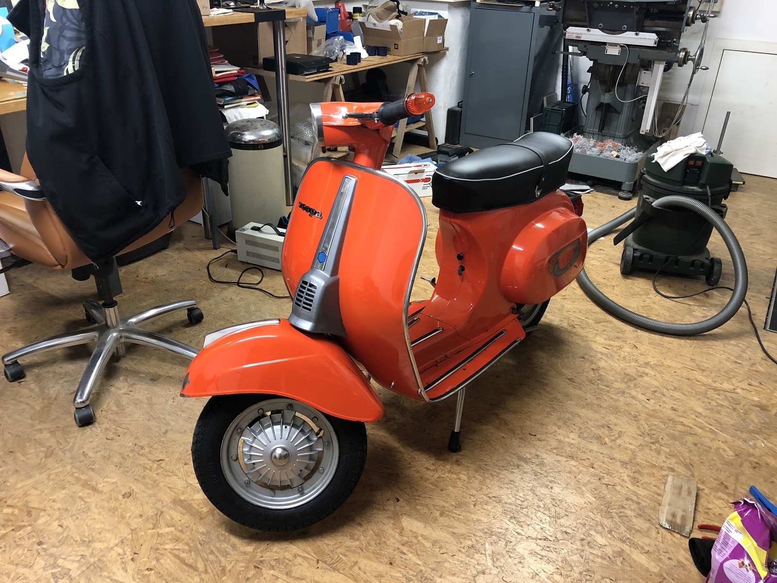 So, nun könnte man aufsitzen, wenn der Motor drin ist und läuft und ich versau mir die schöne, aufbereitete Lackfläche nicht. Das Paket mit der Zündung ist verschickt, ich hoffe, ich kann morgen nach der Arbeit den Motor fertig machen.