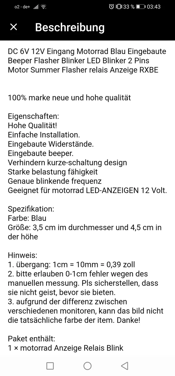 Das sind die Daten von den LED Blinkrelais die ich verbaut habe