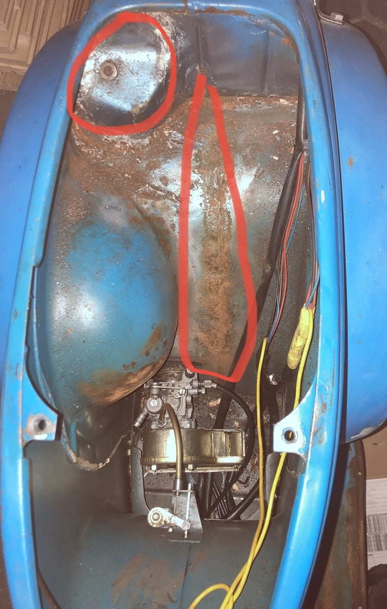 Trittbrett und so ist alles noch okay. unter der Sitzbank und hintern Kennzeichen ist halt alles hinüber. Wie es im Radhaus beim Motor aussieht wenn gestrahlt wurde weiß ich ja noch nicht…