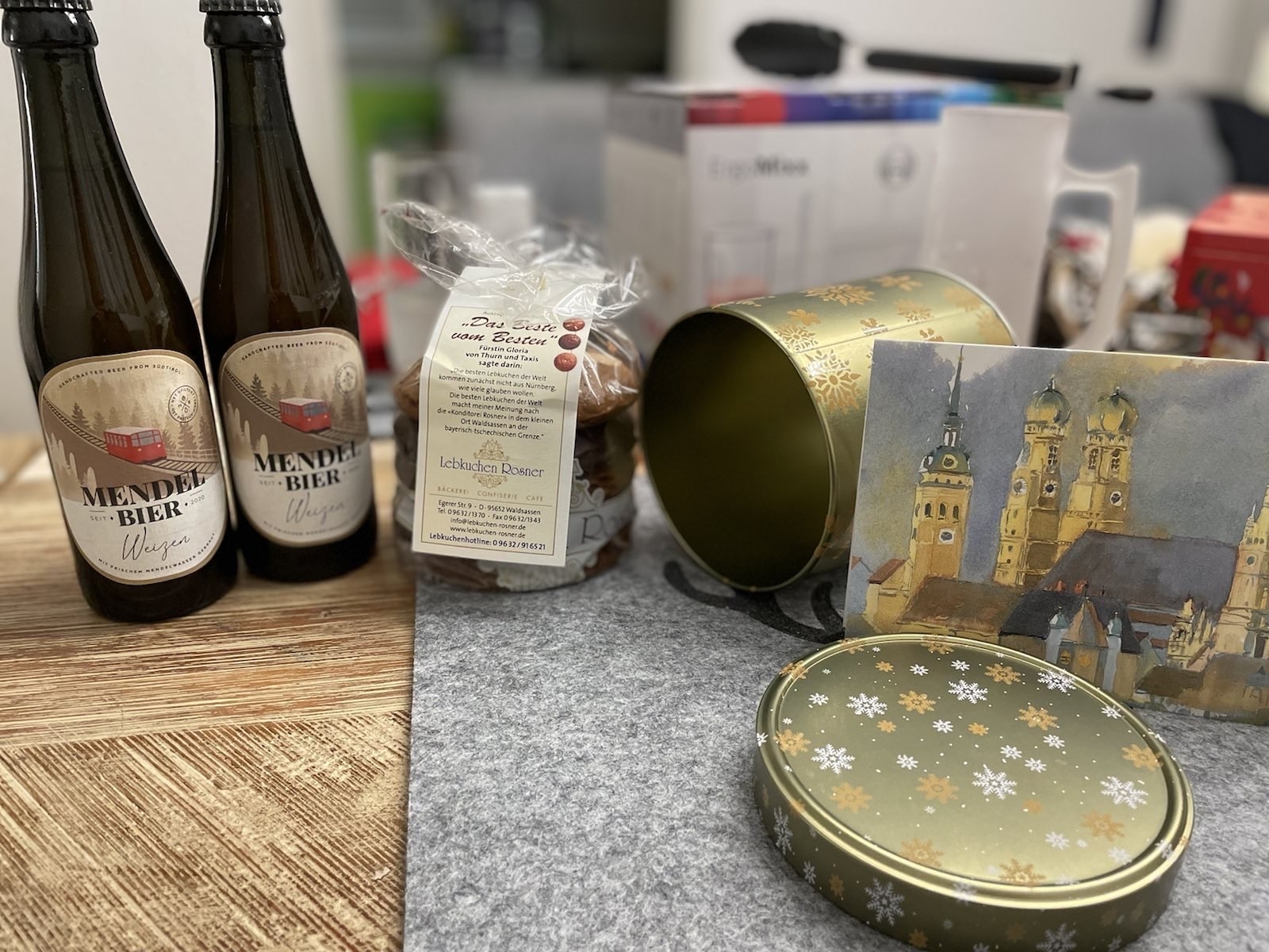 Was Selbstgebackenes, was zum Trinken und was gegen kalte Füße, sogar mit hobbypassenden Motiven !