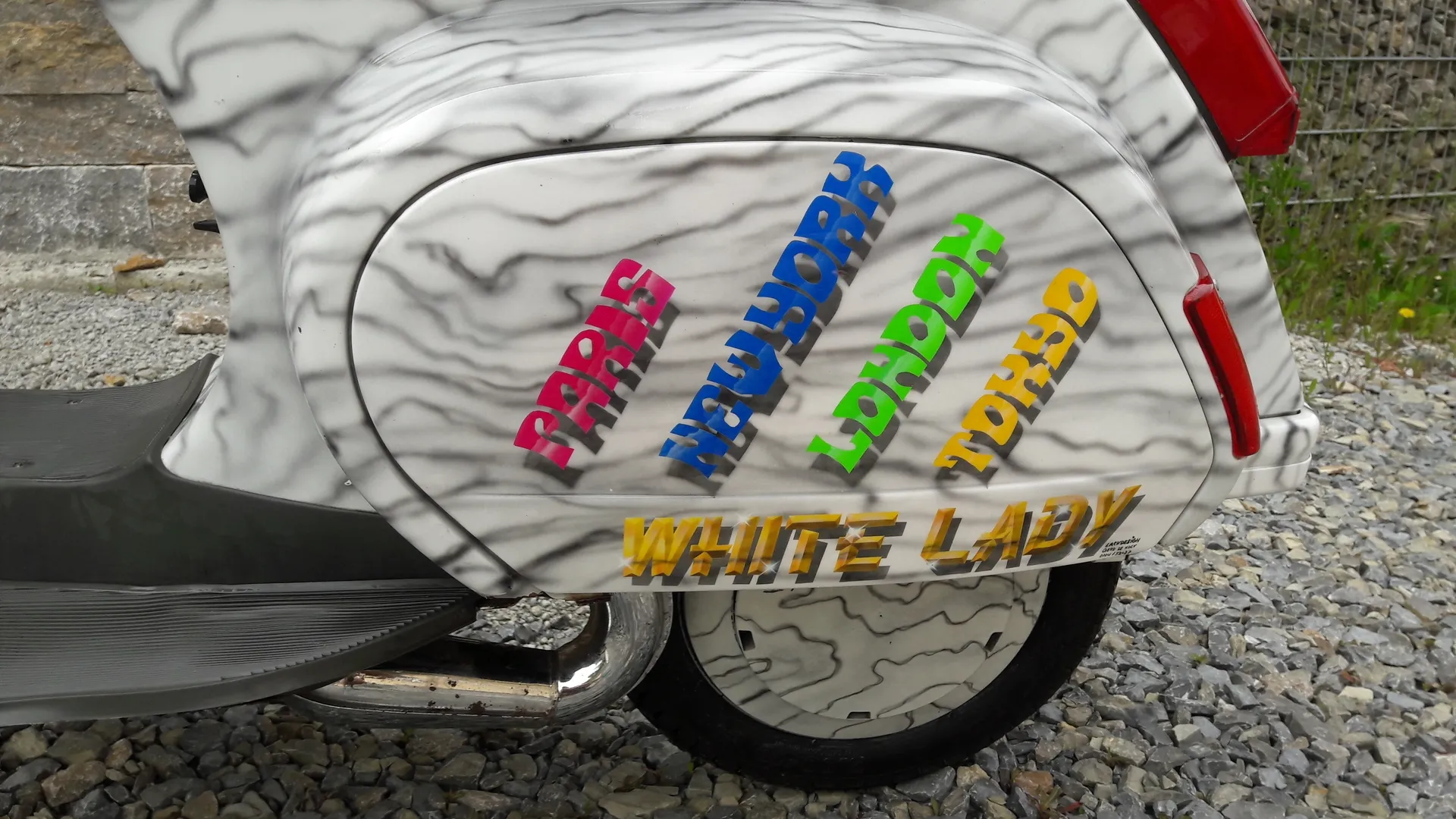 Ich habe sie 1990 uni weiß gekauft und dann airbrushen lassen.