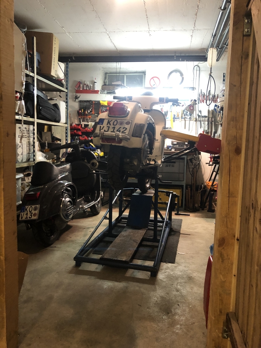Das coole daran, man kann vernünftig, freischwebend am Roller schrauben, ohne das etwas wackelt. ich kann den Motor abhängen und muss nicht gleich alles aushängen, wenn man Steuerzeiten ausmessen will, Zylinder wechseln, Züge einstellen oder was auch immer … da hängt nix im Weg und das auf kleinstem Raum... Kannst du halt nur für Roller mit Fußteil verwenden...
