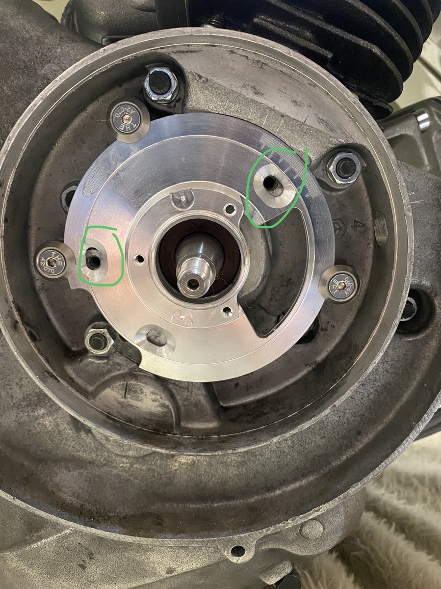 Moin zusammen! Ich wollte an meinem V5A4M Motor die SIP VAPE Zündung verbauen. Leider ist mir nicht klar, wie ich die Grundplatte anbauen muss. Ich nehme an die Platte wir an den roten Löchern mit den Rosetten verschraubt. Doch wozu sind die grün markierten Löcher da? Kennt sich jemand damit aus und kann mir beim Einbau weiterhelfen?