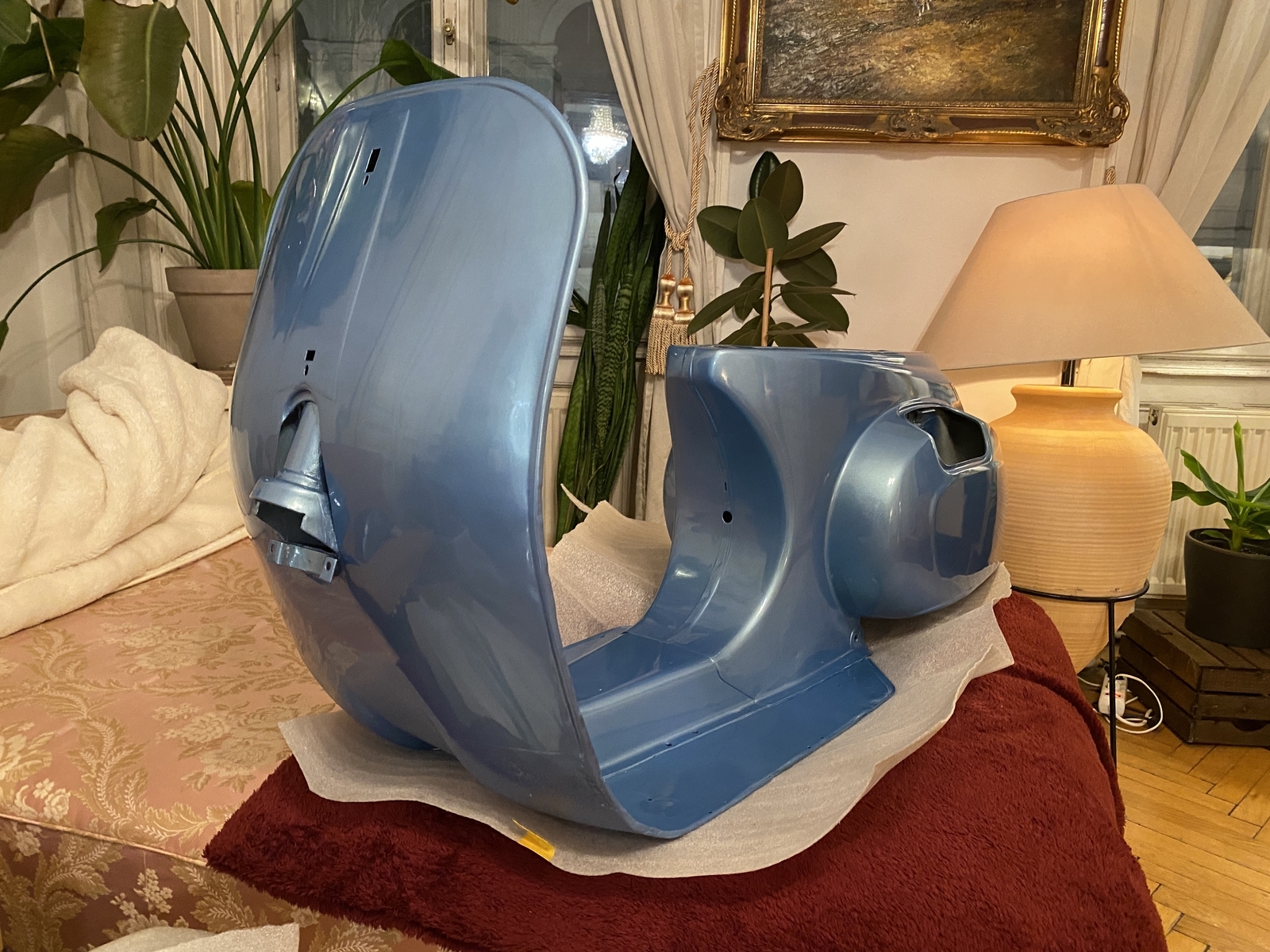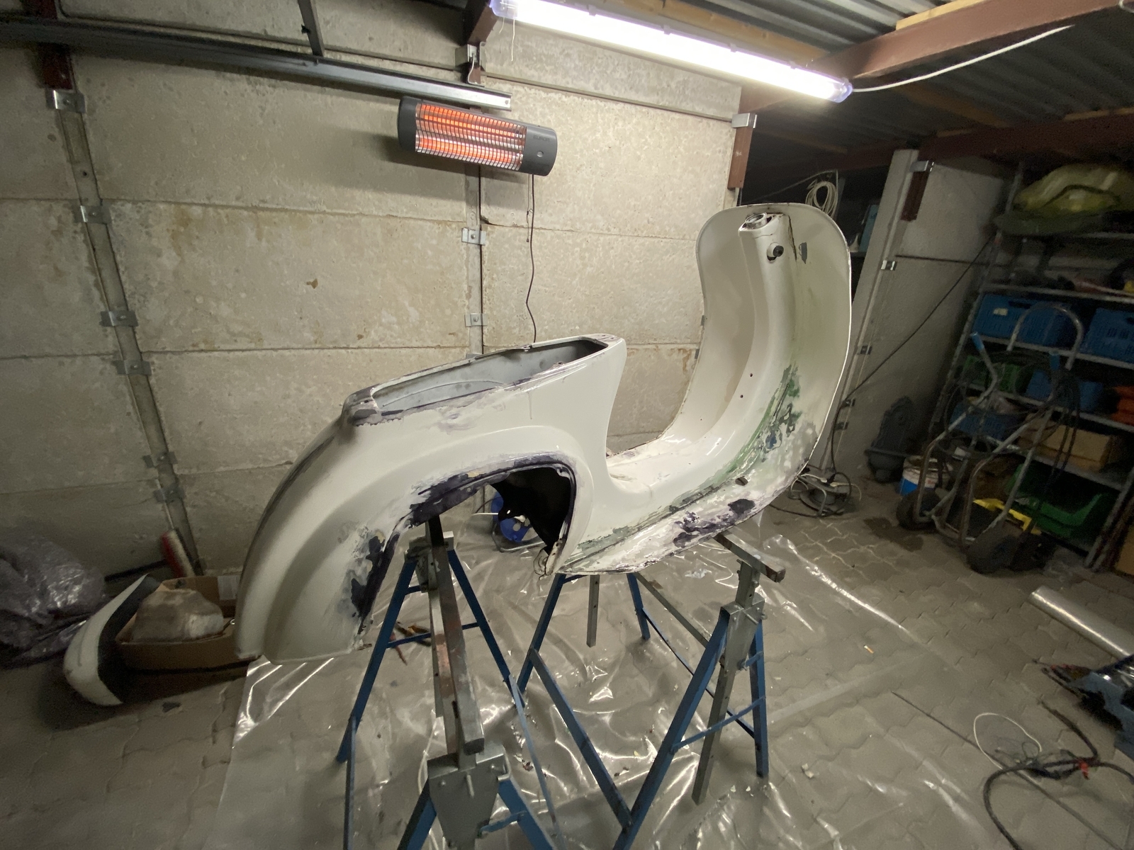 Ich habe mein erstes Vespa Restaurationsprojekt zum Ausprobieren und Lernen bereits gestartet und bin schon kurz vor dem Zusammenbau (1978 Vespa Special). Mit dem Ergebnis bin ich persönlich sehr zufrieden und habe sie bewusst nicht perfekt gefinished, denn schließlich ist die auch über 40 und ich wollte, dass trotz neuem Lack sichtbar ist, dass die schon gelebt hat. Nunja, die Karosserie ist bereits fertig lackiert und es geht langsam ans Zusammenbauen.