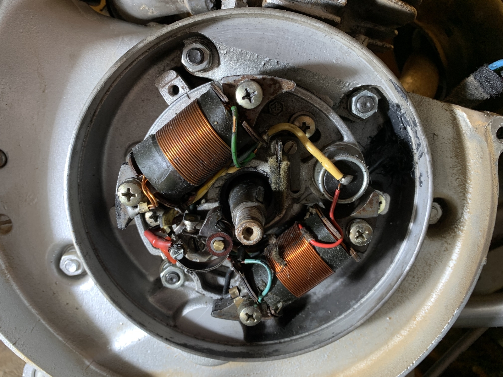 Ist das eigentlich der Motor, bei dem du das Polrad nicht runter gekriegt hast im ersten Schritt? Darunter war ja eine ZGP mit nur 2 Spulen mit Unterbrecher, die haben bei SC nie 5 Kabel. Zumindest habe ich keine gesehen.