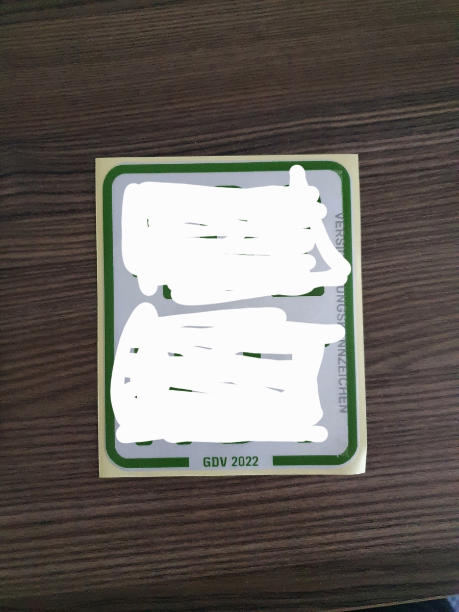 Mal sehen, was für Schilder mir meine Versicherung zuschickt, ich hoffe mal Blech.