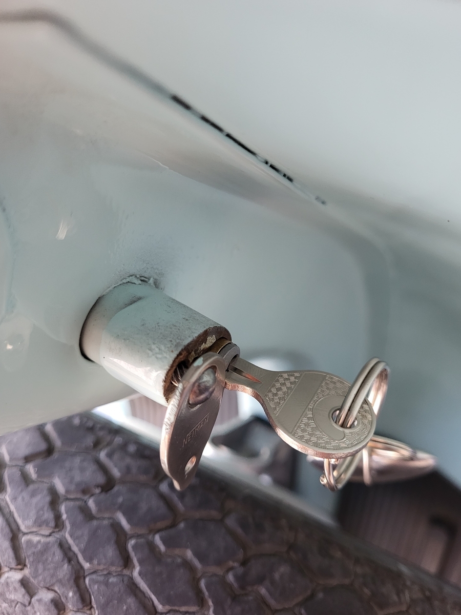 Lenker dreht sich nicht, beim Versuch aufzuschliessen kommt der Zylinder raus, da das Schloss nicht fest sitzt, die Niete mit der Schlossblende halten das Schloss nicht