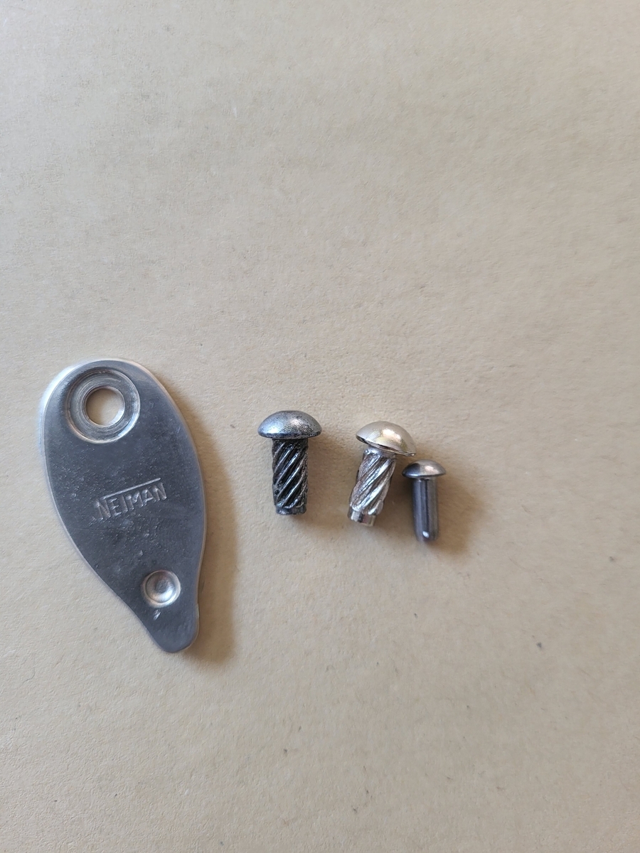 Wenn ich mir den Niet auf dem Foto anschaue, würde ich sagen, dass er entweder noch nicht eingeschlagen worden ist oder überhaut nicht greift, weil er einen zu kleinen Durchmesser hat - oder die Bohrung im Rahmen "ausgenudelt" ( Achtung:Ruhrpott ) ist.