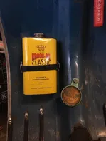 Ich habe einen Vespa Ölflaschenhalter zu verkaufen! Man kann eine Ölflasche, eine Musikbox oder eine Trink flasche herein stellen. Befestigt wird diese dann durch einen kleinen Kunstleder Riemen. Diesen hakt man dann einfach auf einer Seite ein.
