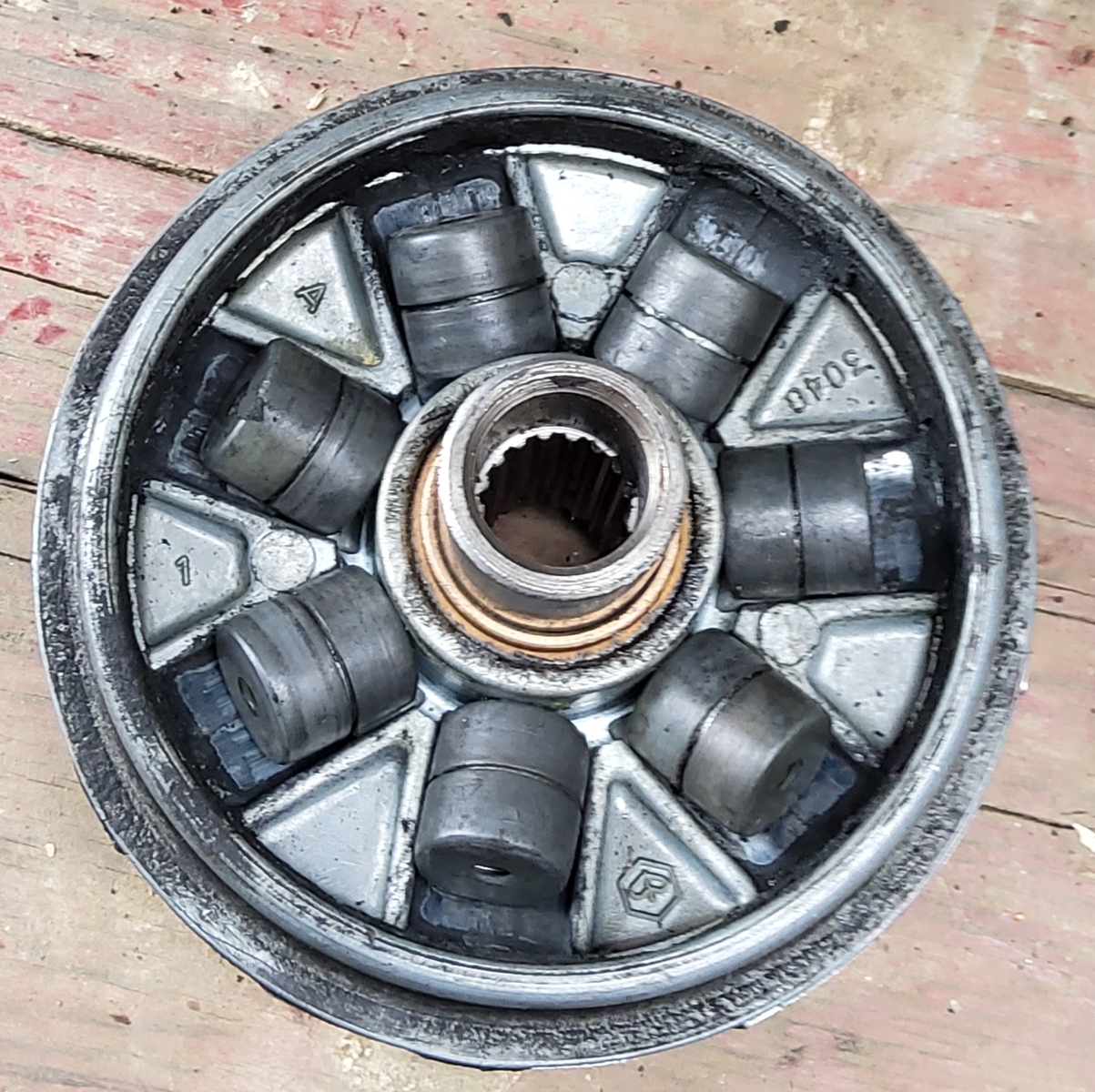 Da hilft wahrscheinlich nur noch ein guter, hitzebeständiger 2K-Kleber, damit Riemenscheibe und Vario wieder fest miteinander verbunden sind.