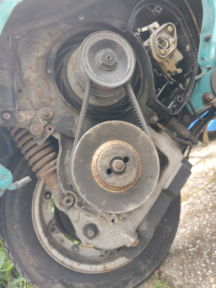 Jetzt sind wir an dem Punkt aufbocken und folgende.Für die nachfolgenden Schritte bräuchten wir bitte noch genauere "Anweisungen". Wie der Roller nun auf der rechten Seite aussieht habe ich auf ein paar Bildern dokumentiert. Evtl. könnt ihr uns auf den Bildern, was wir wo abschrauben müssen.