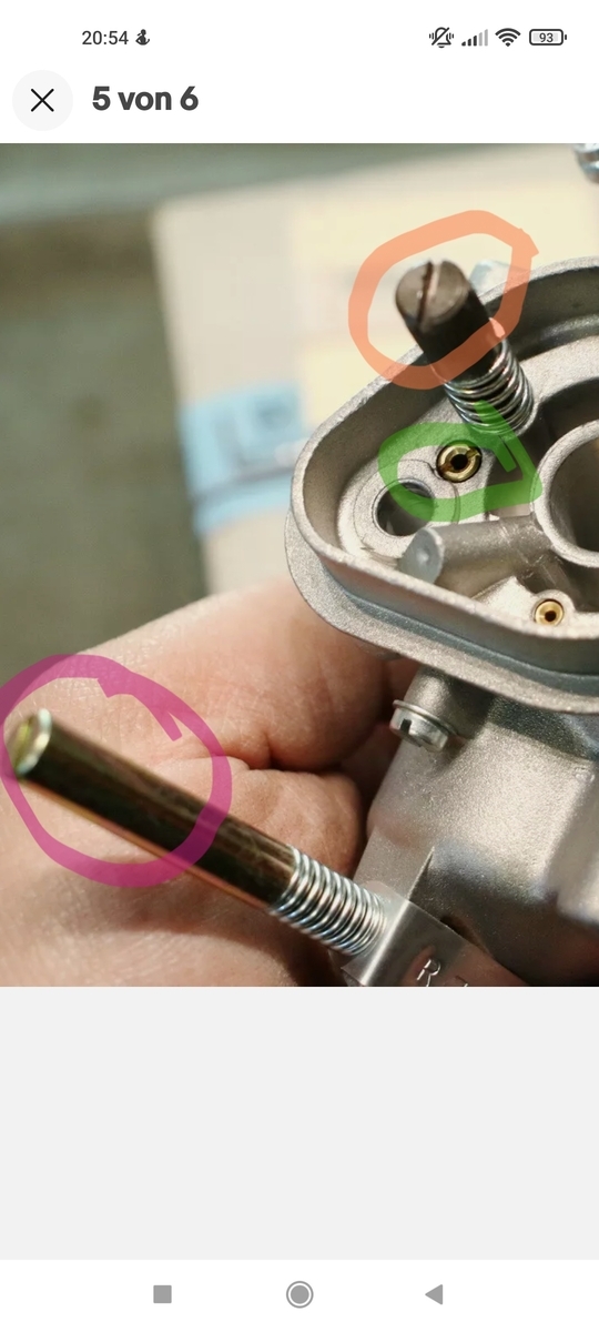 Dann Nebendüse reinschrauben. Die Gemischschraube 4.5 Umdrehungen rausdrehen (vorher ganz reindrehen dann 4.5 raus).