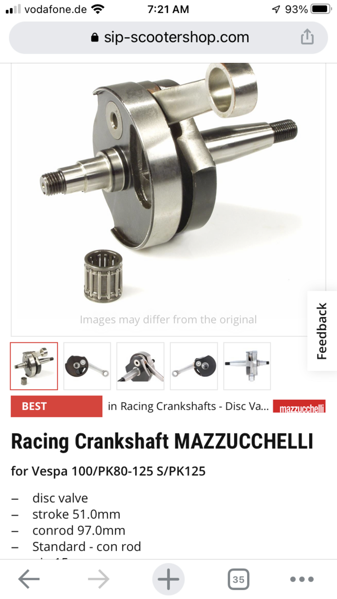 Da ich den Roller zerlegen muss, habe ich mich entschlossen, einen neuen dr 130ccm Zylinder und eine Mazzuchelli 20/20 51 Hub Kurbel zu montieren. Der Roller ist einPKXL2 Baujahr 1993.