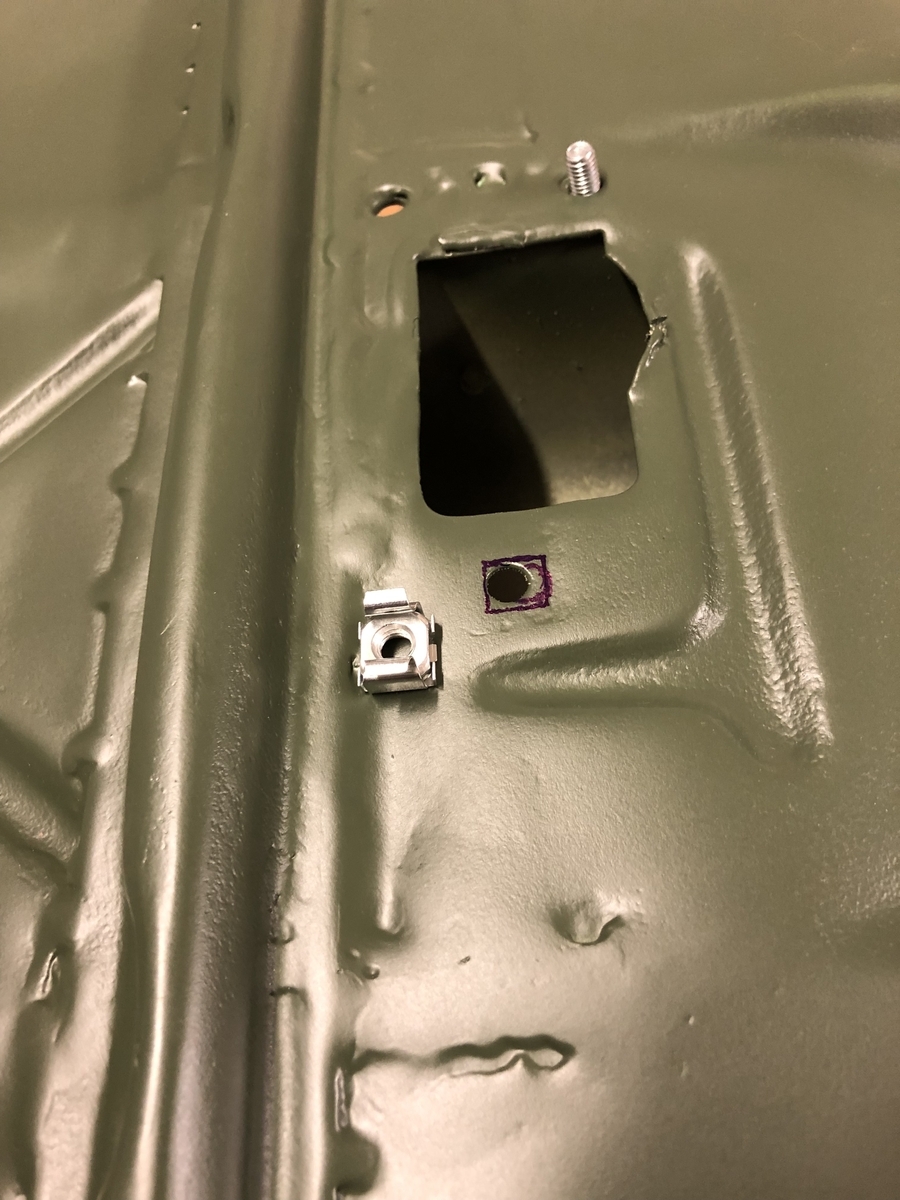Dann mal angezeichnet und rausgedremelt, das Vierkantloch. Warum auch immer an der Karosse ein rundes Loch ist: