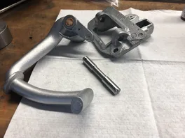 Erstmal mit Korund gestrahlt. Dann einen neuen Lagerbolzen aus Edelstahl gedreht mit dem neuen Maß 10.05, damit er saugend in der Halteplatte sitzt.