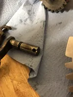Da die Welle nicht mehr so schön ist, habe ich den Rest vom festsitzenden Stif mal dringelassen. Wenn es eine neue gibt, bleibt das so und alles an der Stelle kommt neu.