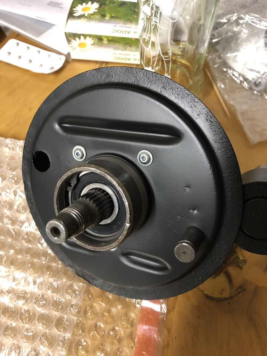 ich konnte die Kupplungswelle retten. Den neuen Arm hatte ich ja schon bestellt, es verblieb noch der Rest des Spannstiftes im Loch.