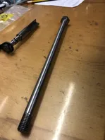 Deshalb habe ich mich mal einem Problem gewidmet, das mich an der Vespa stört. Nämlich die Tatsache, daß der große Bolzen für den Motor zu kurz ist, um links und rechts eine Unterlegscheibe zu unterlegen und dann eine Stopmutter zu benutzen.
