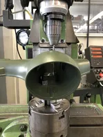 Dann habe ich mir eine lange M5 Zylinderkopfschraube so umgearbeitet, daß ich sie zentriert über der neuen Bohrung mit der Spindel führen konnte und sie gleichzeitig mit einem 7er Maulschlüssel drehen: