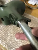 Der einfache Part war noch das Fummelblech mit dem M5. Eine neue Gewindehülse gemacht (die die ich von der Automatik hatte, war nicht geeignet. Ich konnte sie nicht mehr spannen für den Rändel), gerändelt. Bohrung vergrößert am Blechfumme, Blechfummel nochmal gestrahlt, Buchse eingepreßt mit Spezialkleber und im Anschluß nochmal lackiert: