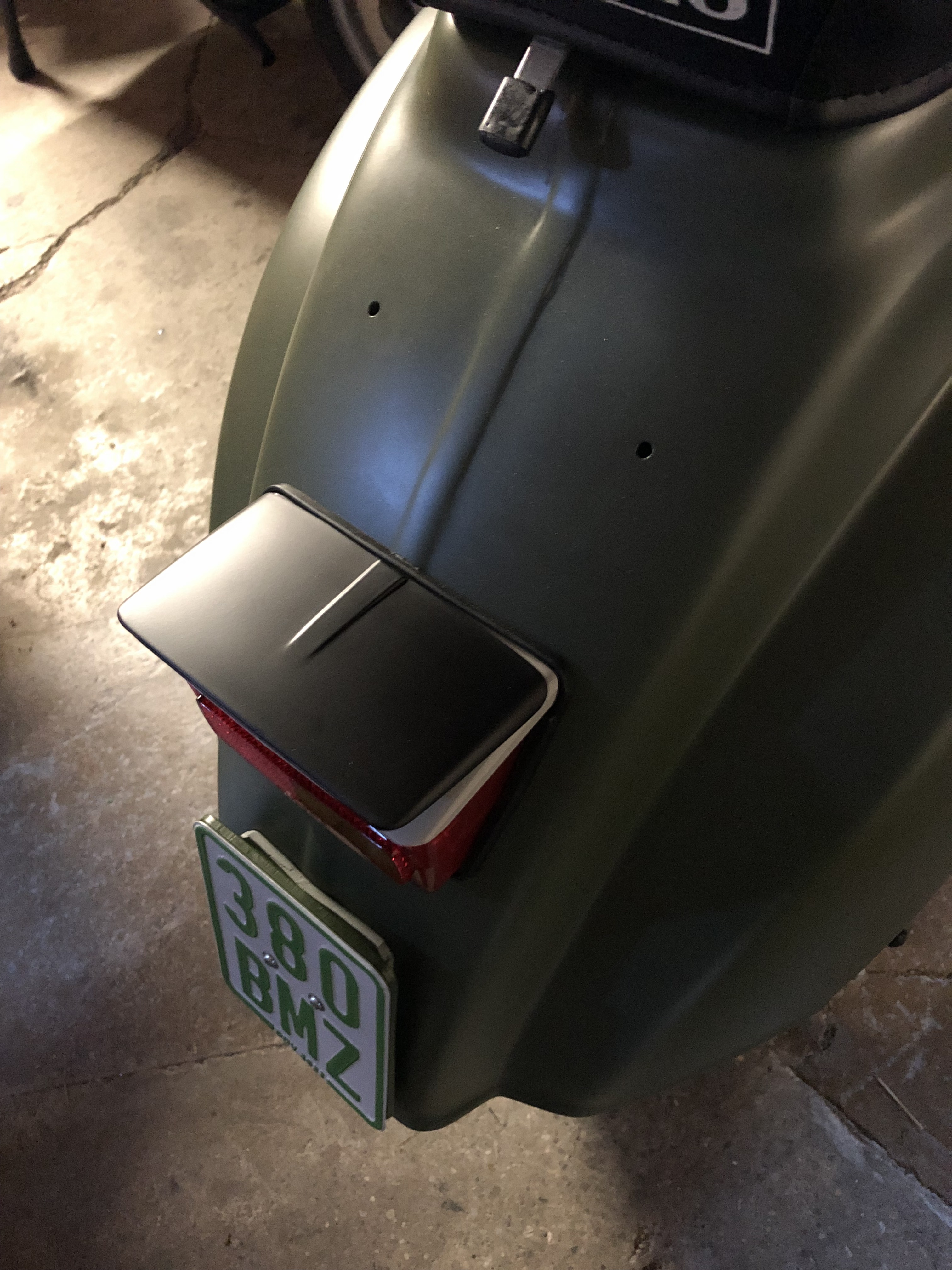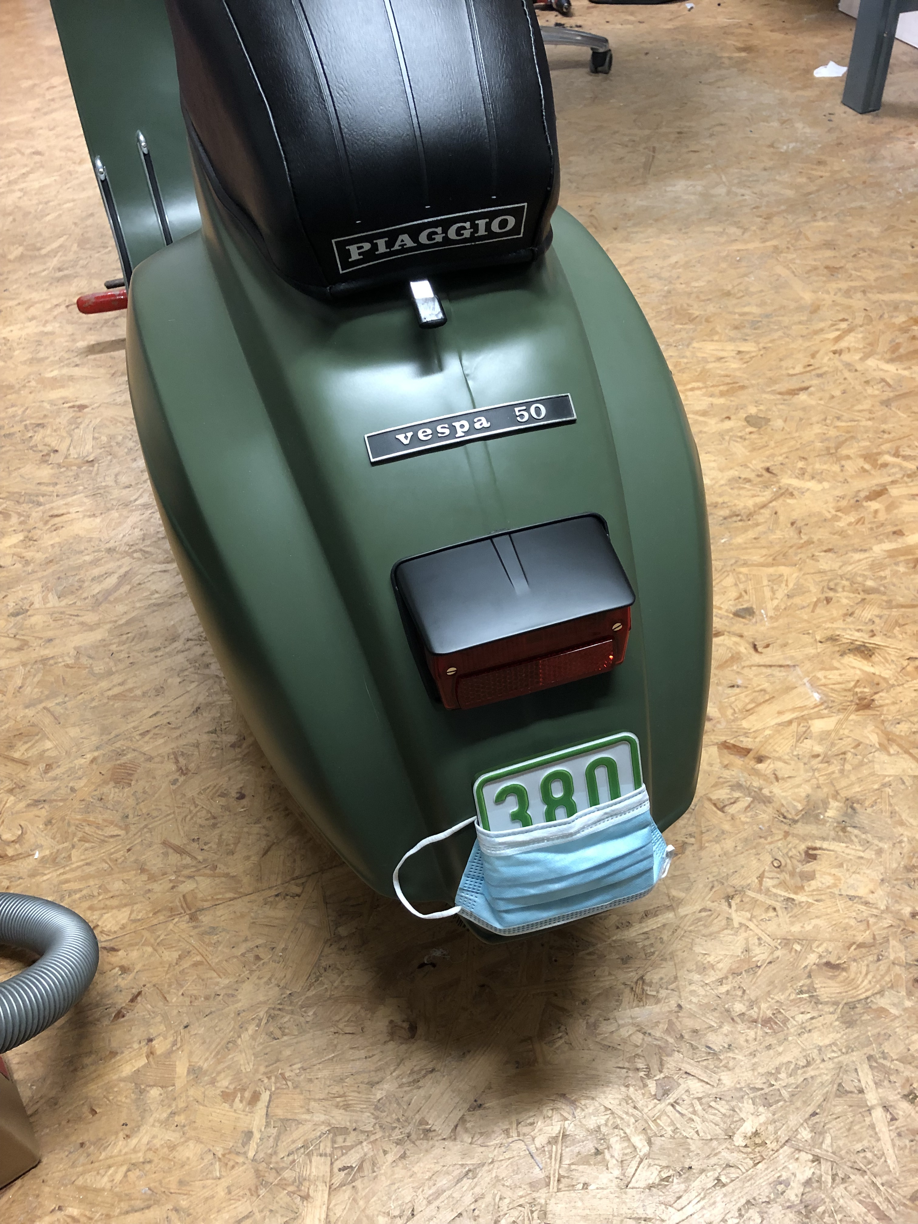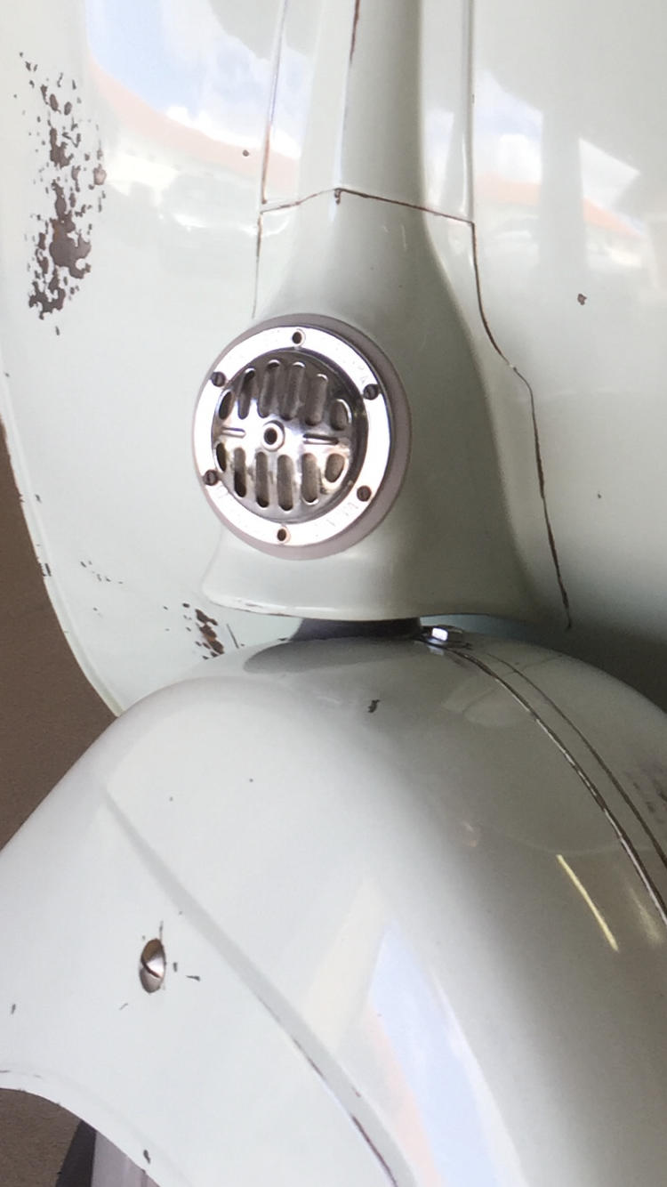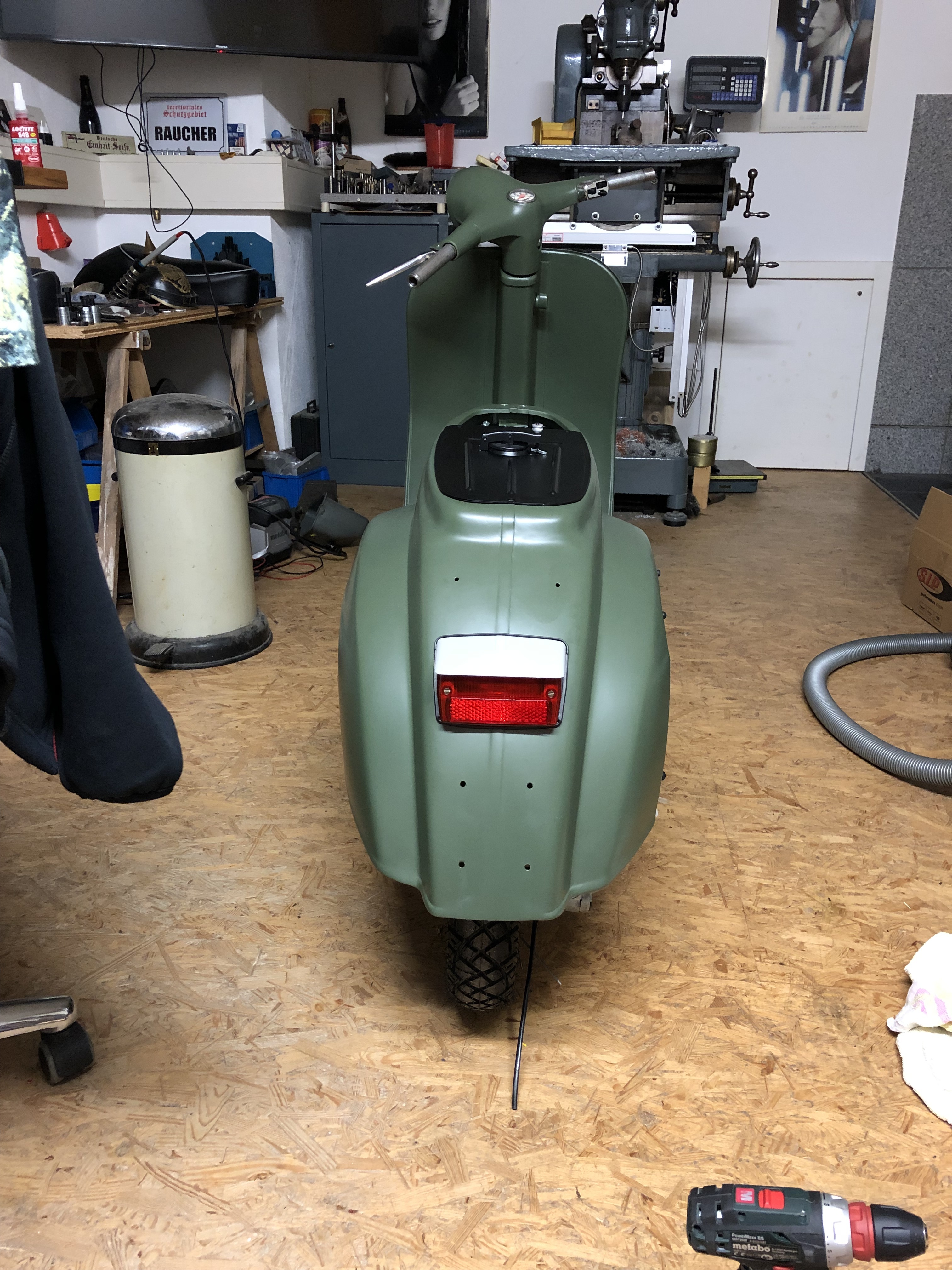 Gestern habe ich noch Sikaflex irgendwas bestellt, dann kann ich das Schild mit ein zwei Punkten fixieren. Vorne fehlt ja auch noch der Vespa-Schriftzug.