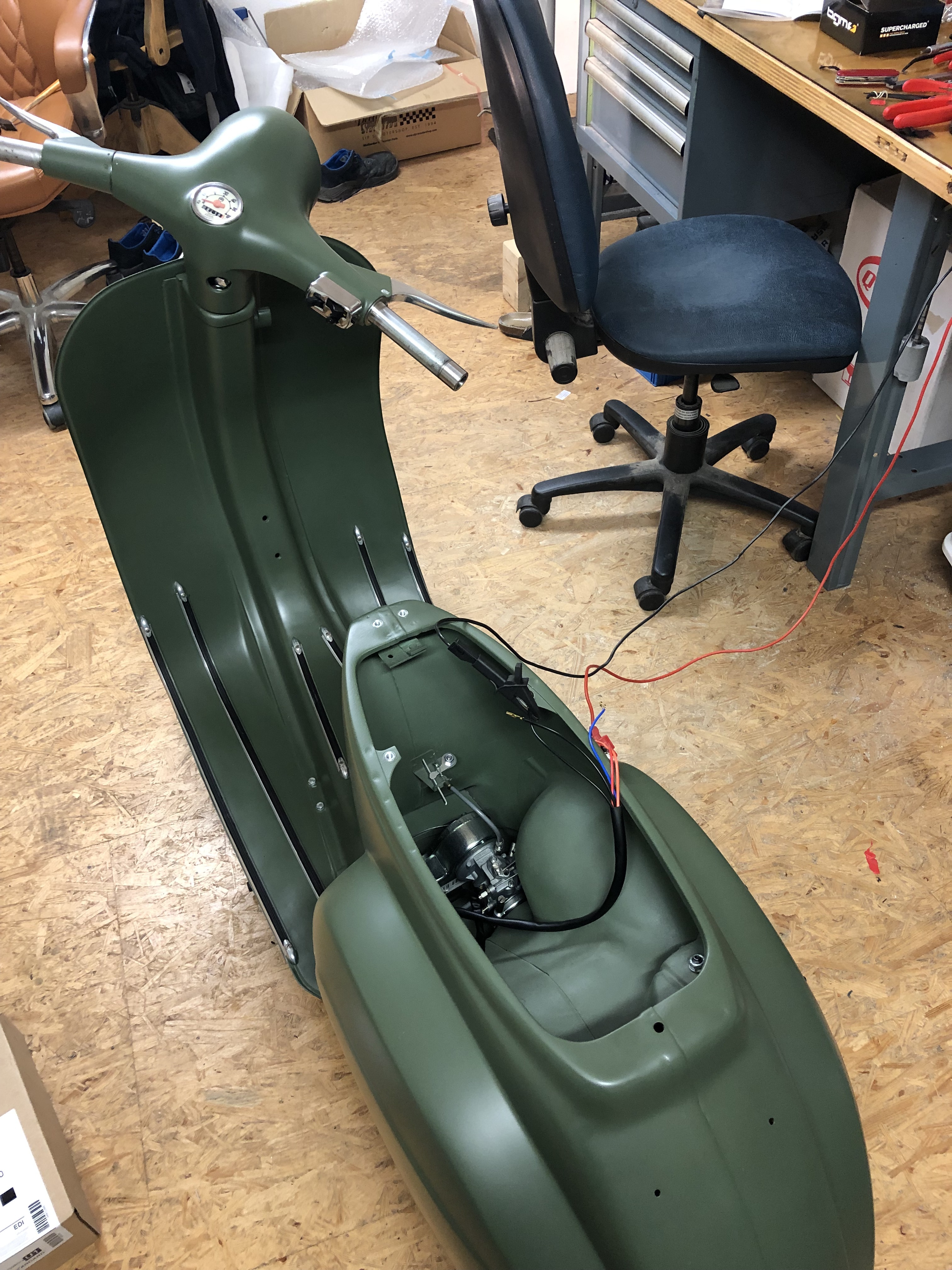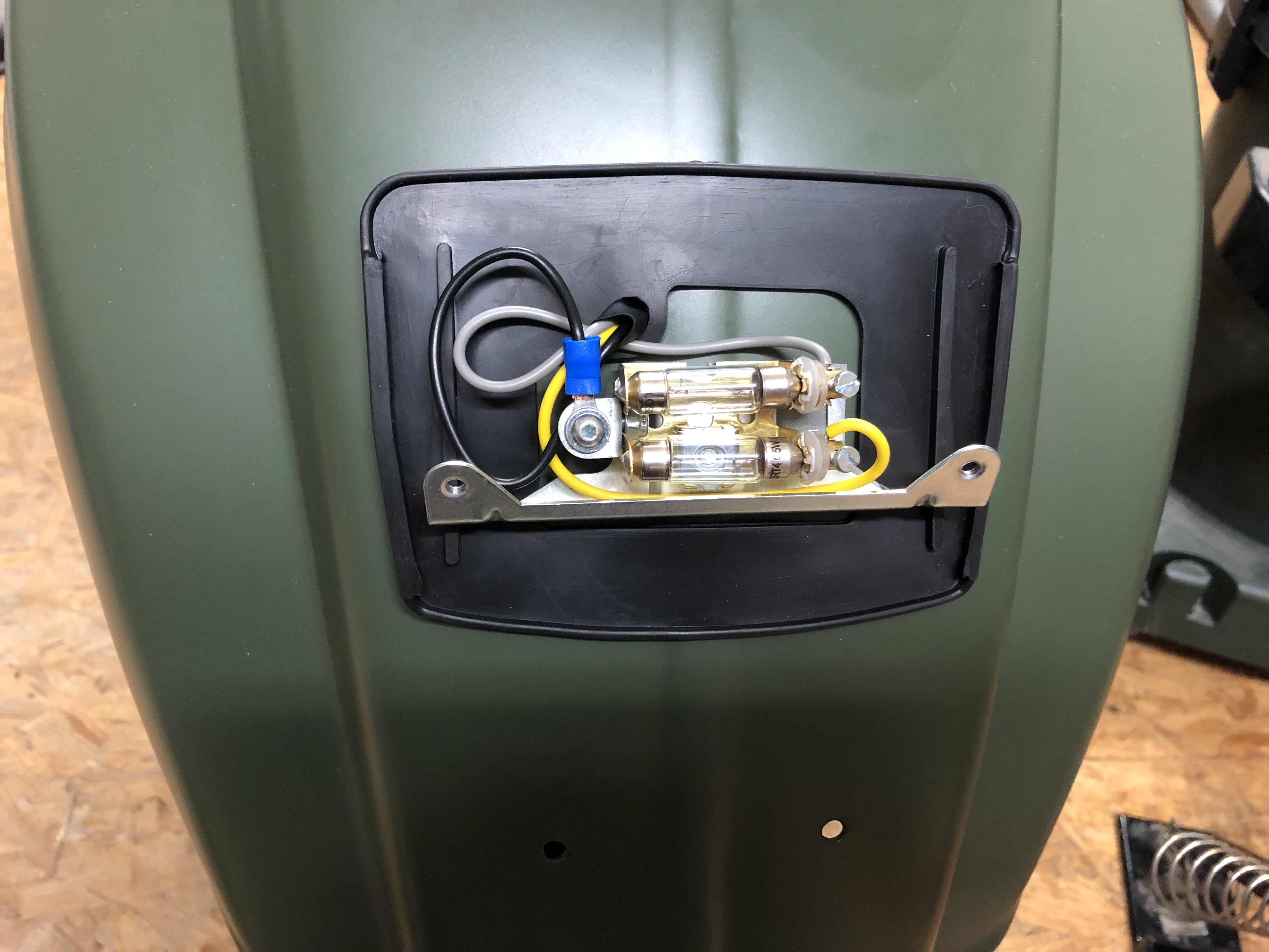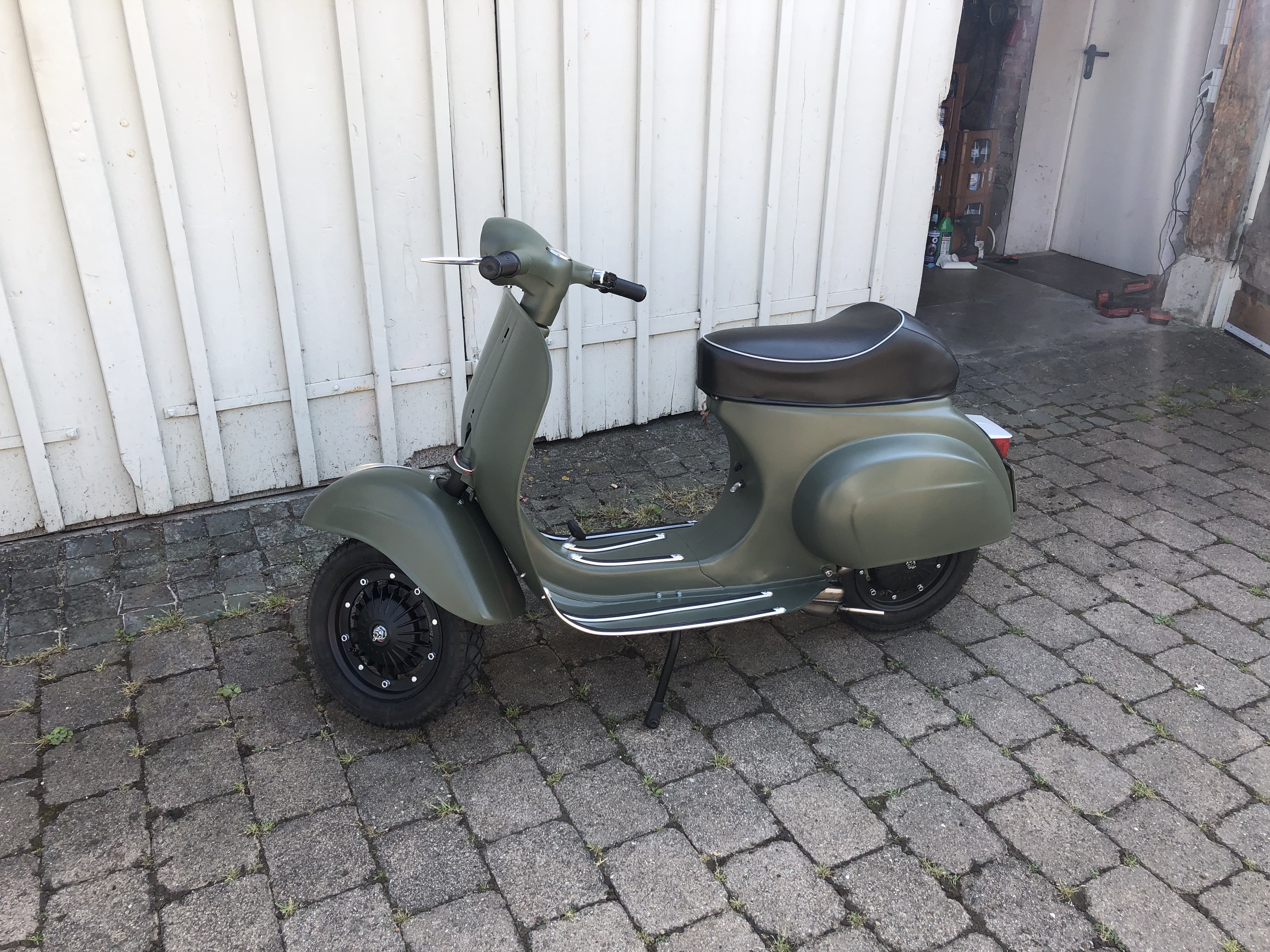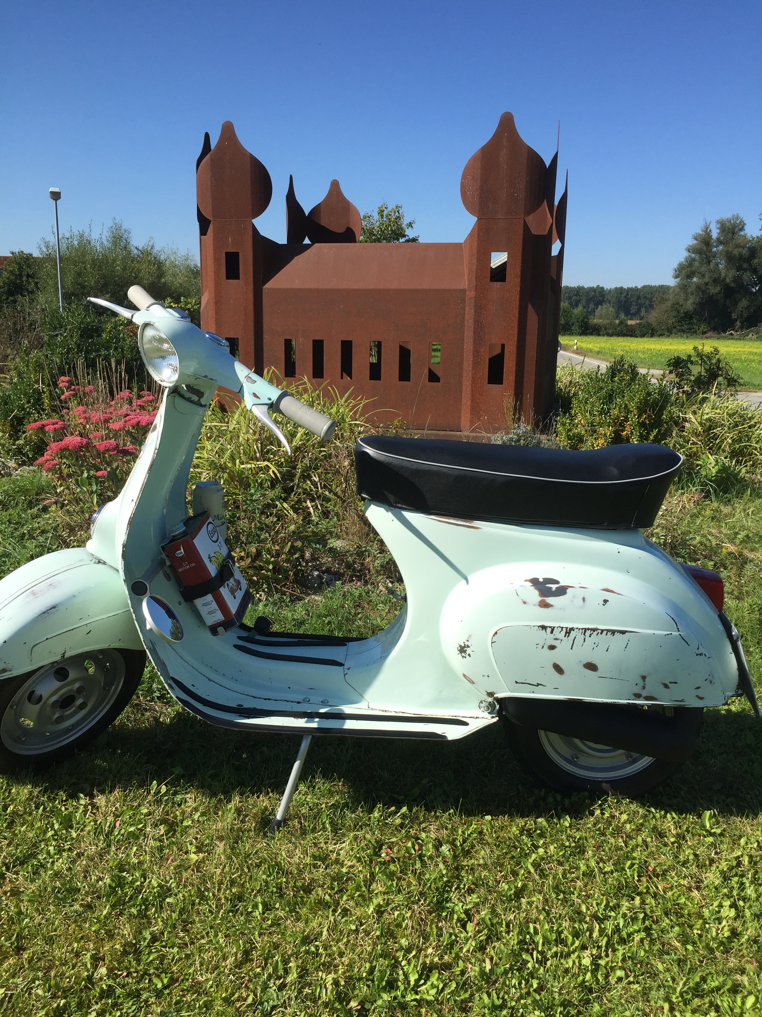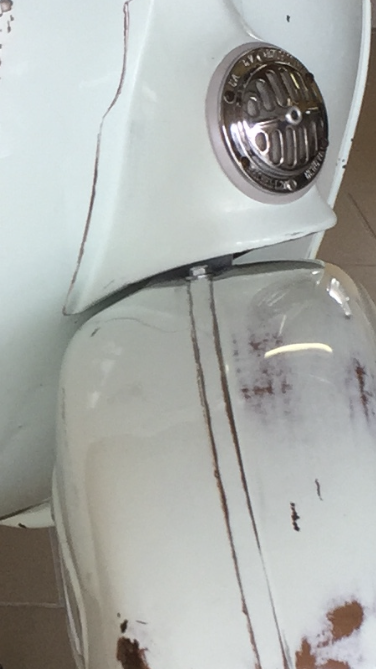 Gestern habe ich noch Sikaflex irgendwas bestellt, dann kann ich das Schild mit ein zwei Punkten fixieren. Vorne fehlt ja auch noch der Vespa-Schriftzug.