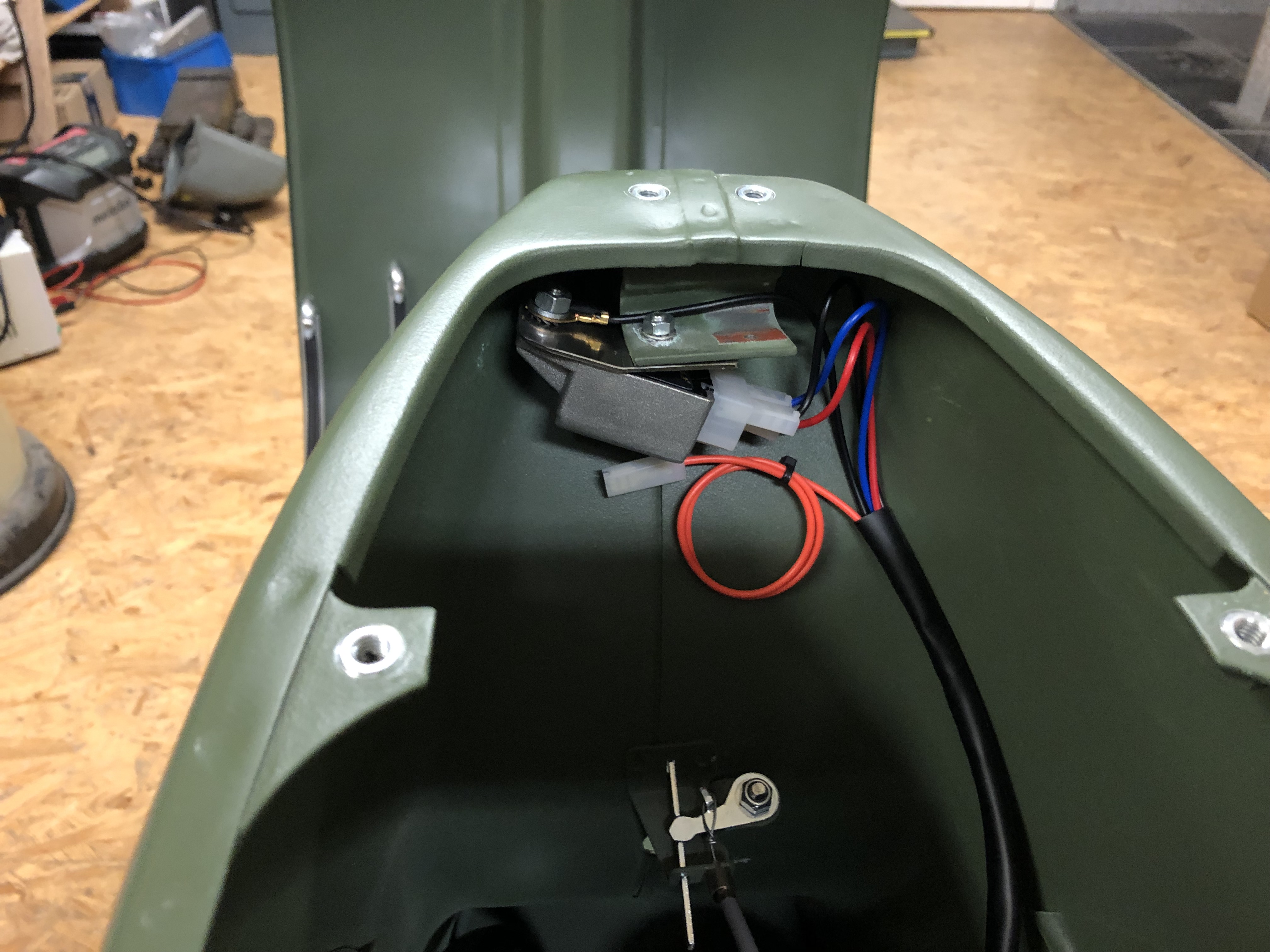Motor schaltet, kuppelt, beide Bremsen gehen hervorragend. Dann Lichtschalter angeschlossen und montiert.