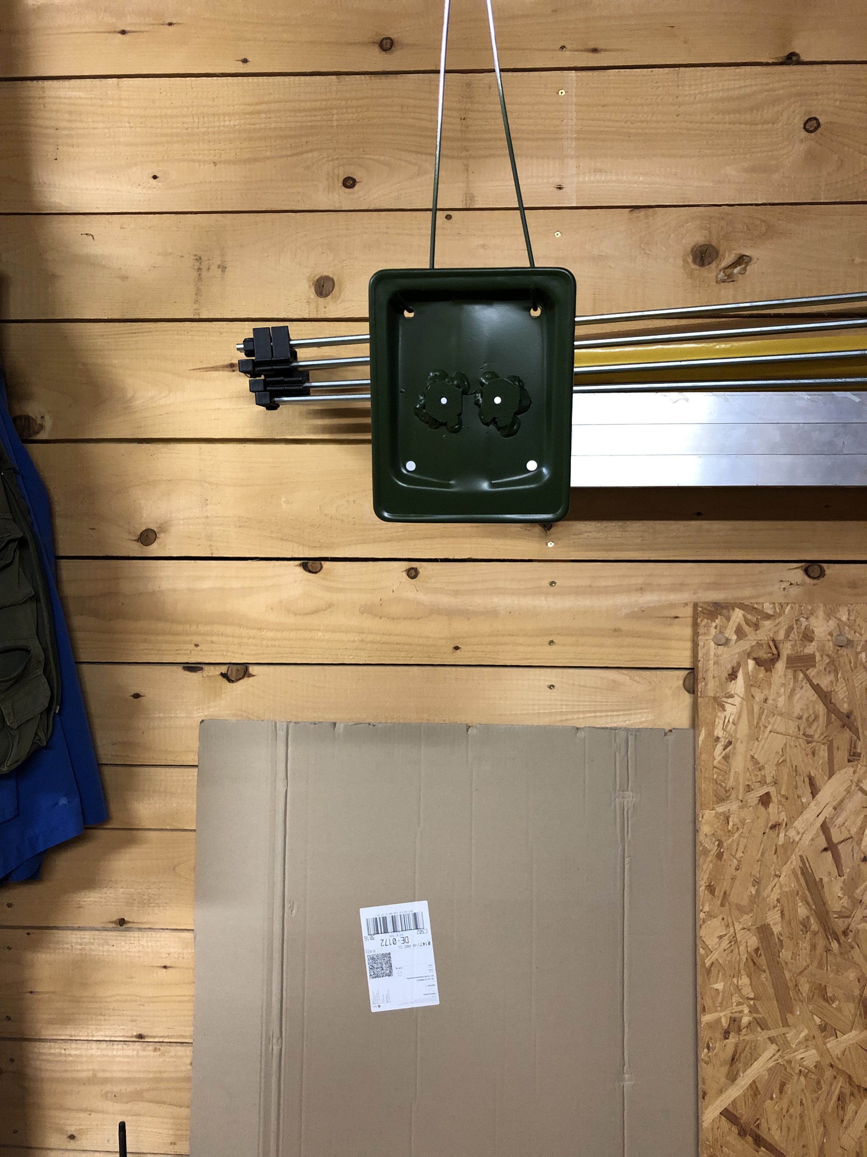 Jetzt hängt es noch über Nacht in der Holzwerkstatt, 3 mal oliv, zweimal Klarlack. Der Ton zu dunkel (wenn auch nicht so dunkel wie auf dem Bild), aber man sieht ja eh nicht viel davon.