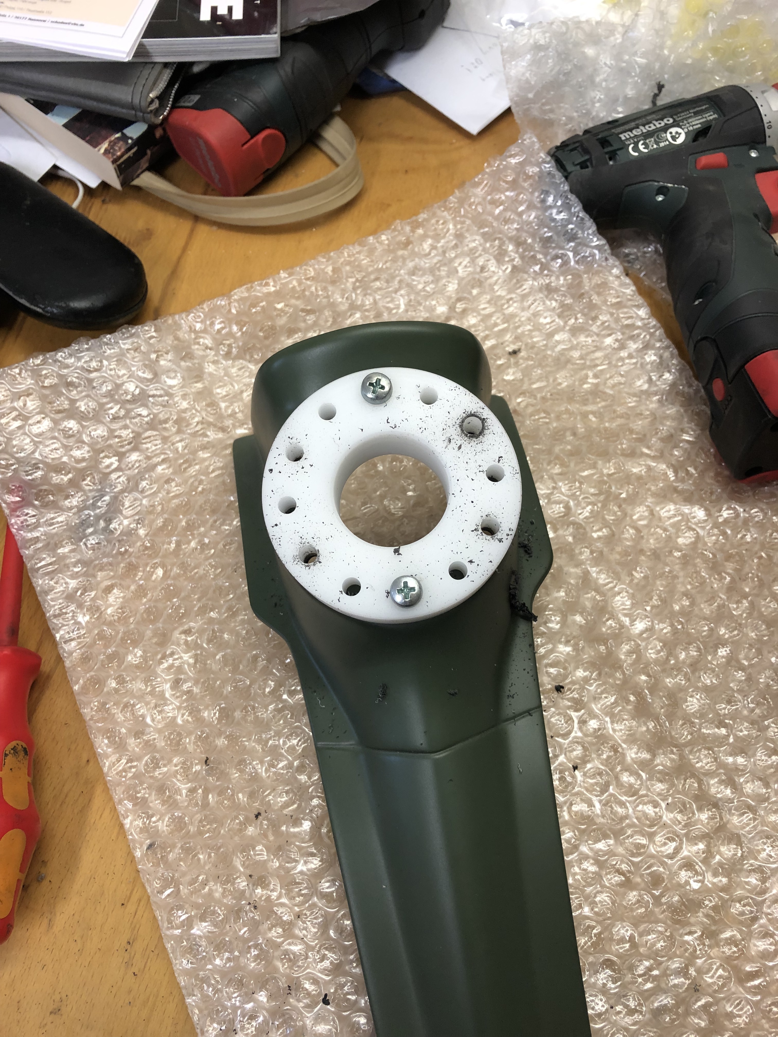Die Bohrungen für das hintere Schild müssen noch etwas bearbeitet werden, damit das dann schön paßt: