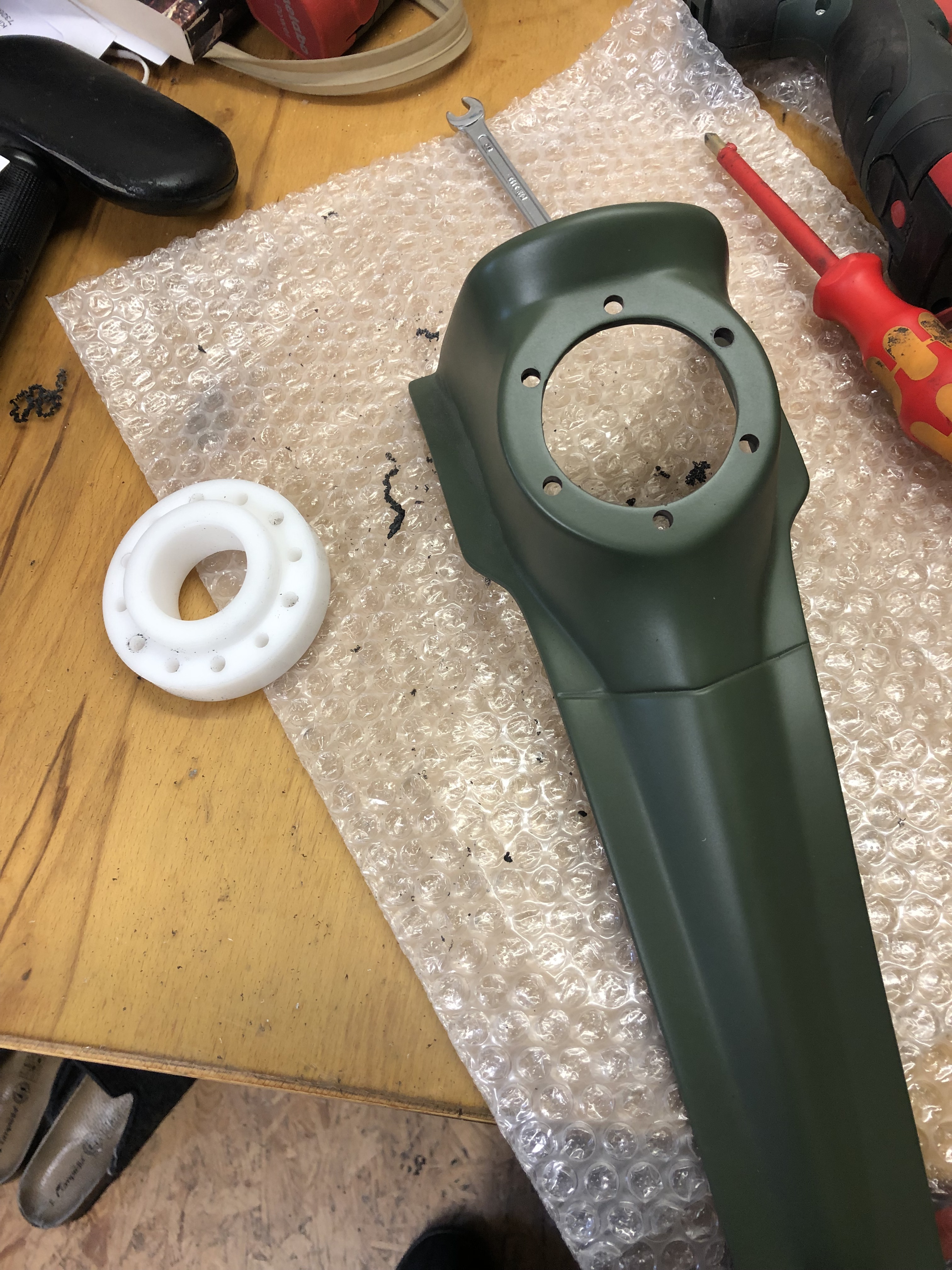 Die Lackiererei hat sich noch nicht gemeldet wegen dem Seitendeckel, aber das drängt nicht.