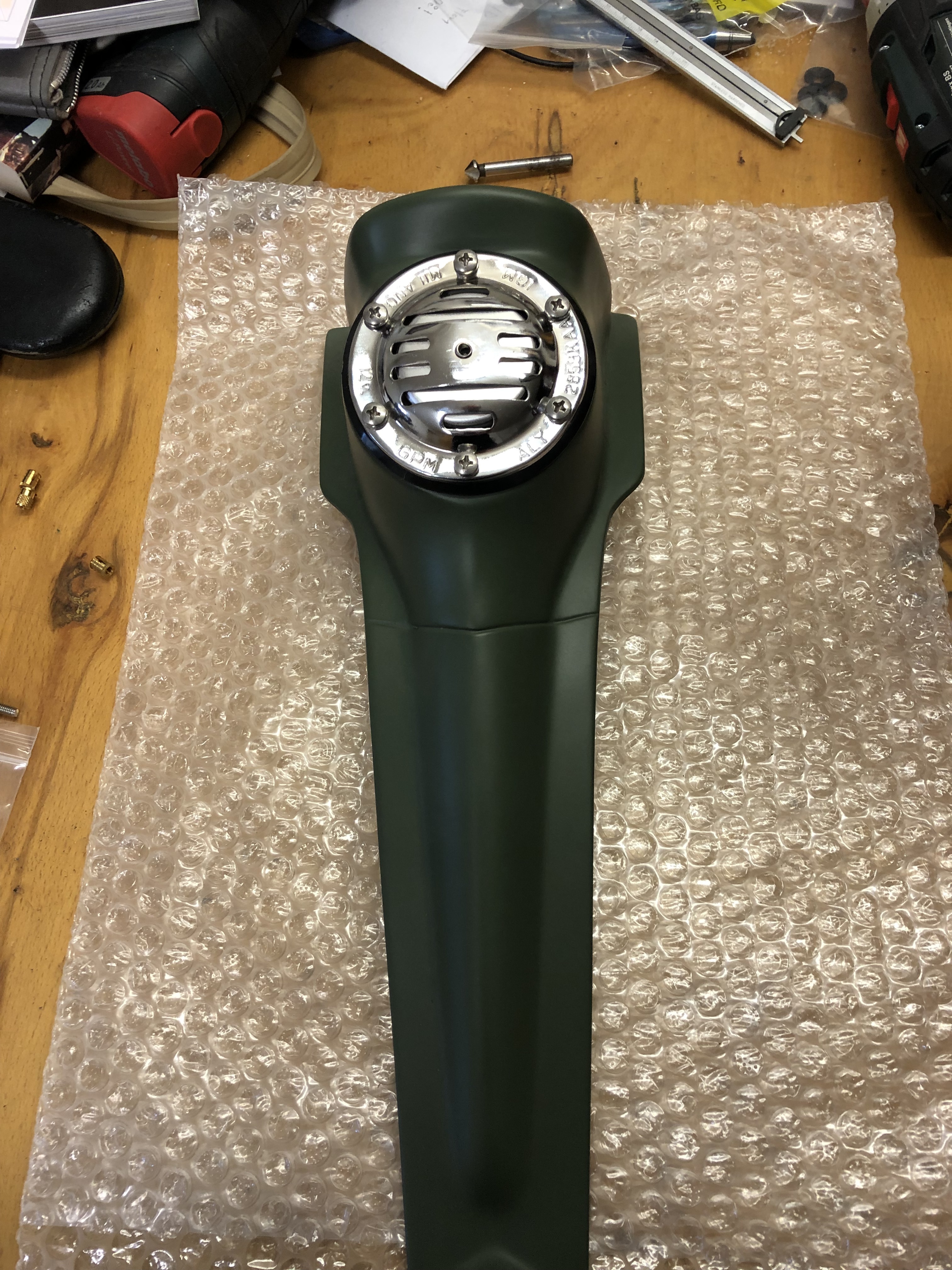 Morgen mache ich mir denke ich eine Bohrschablone für die Bohrungen der Schnarre für die Fake-Kaskade und dann schauen wir mal, wie das mit dem Ankleben der Nase klappt am Samstag.