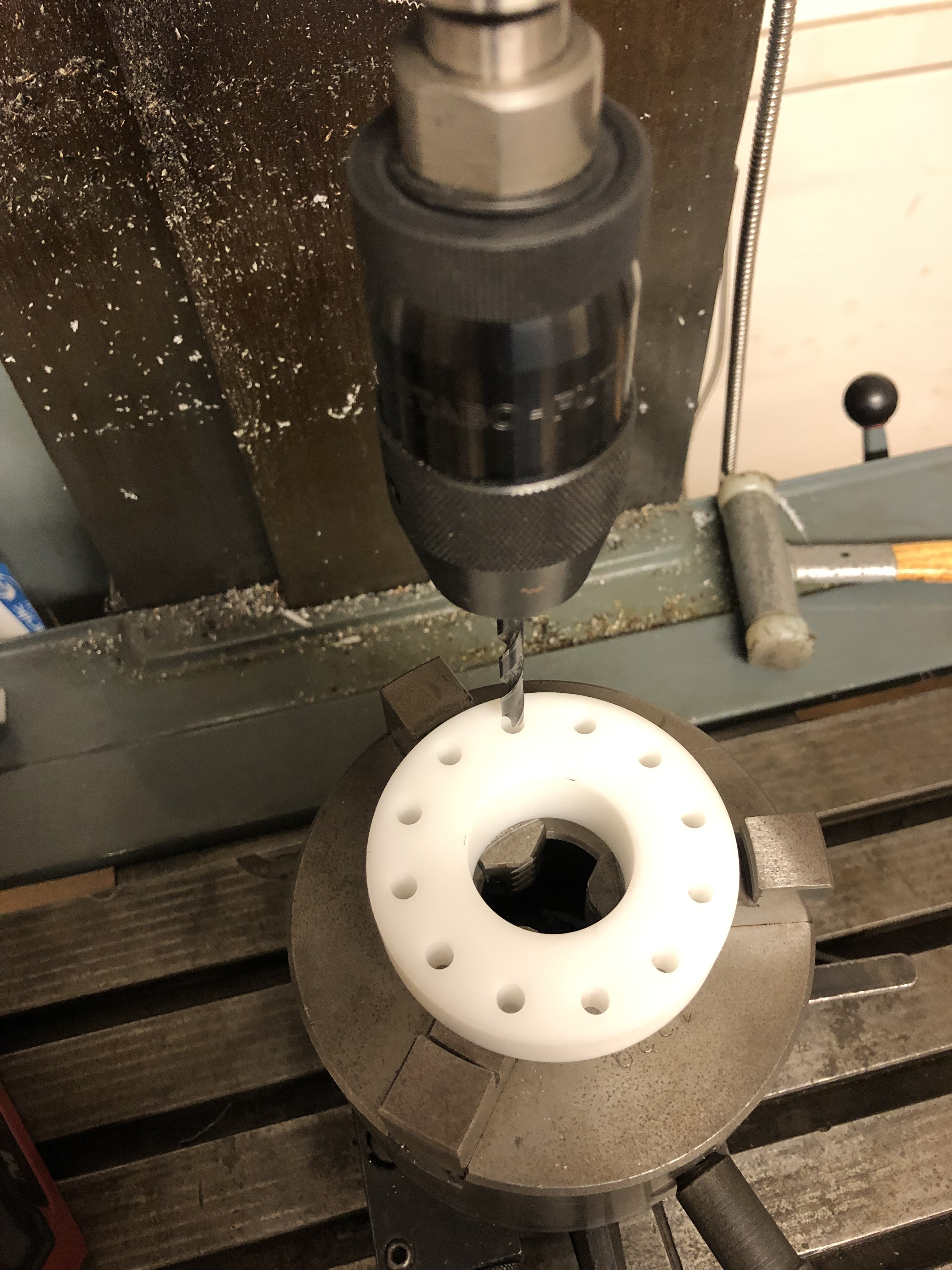 Aber der Reihe nach. Im Geschäft nach Feierabend den Rohling für die Bohrschablone gedreht.