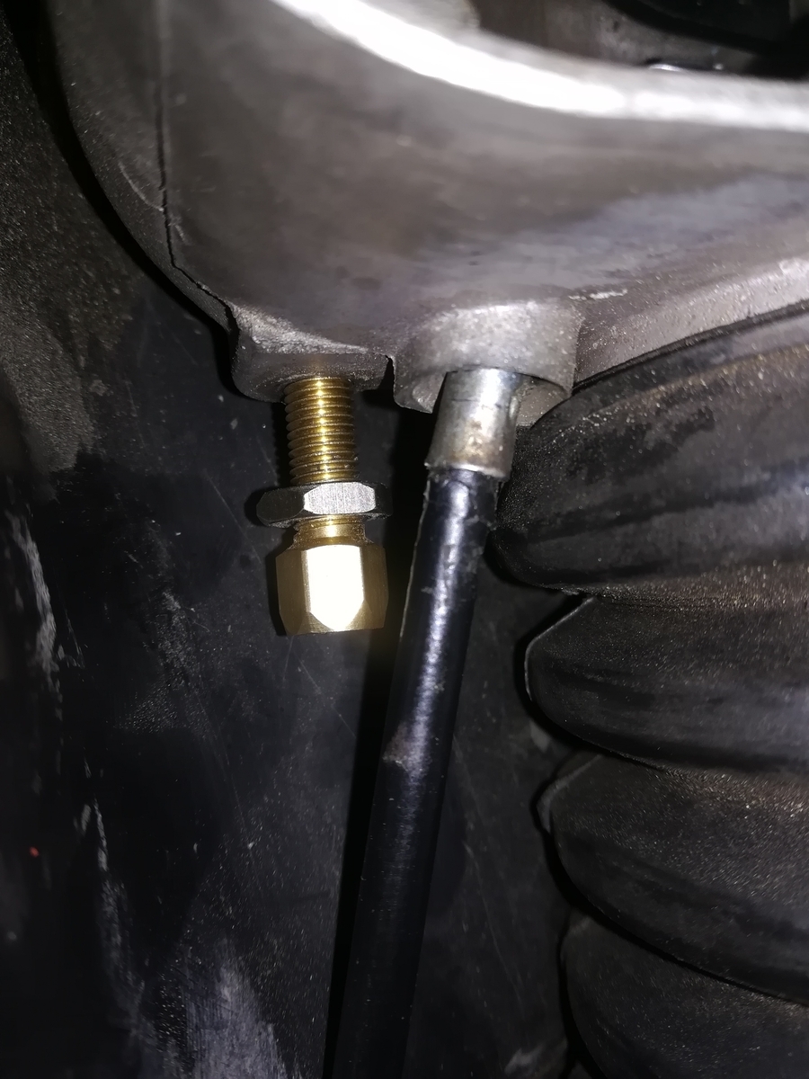Ich glaube im Vergaser ist es da war vorher eine Stange drin für Getrenntschmierung. In die Aufnahme geht aber nicht der Nippel des Gaszug.