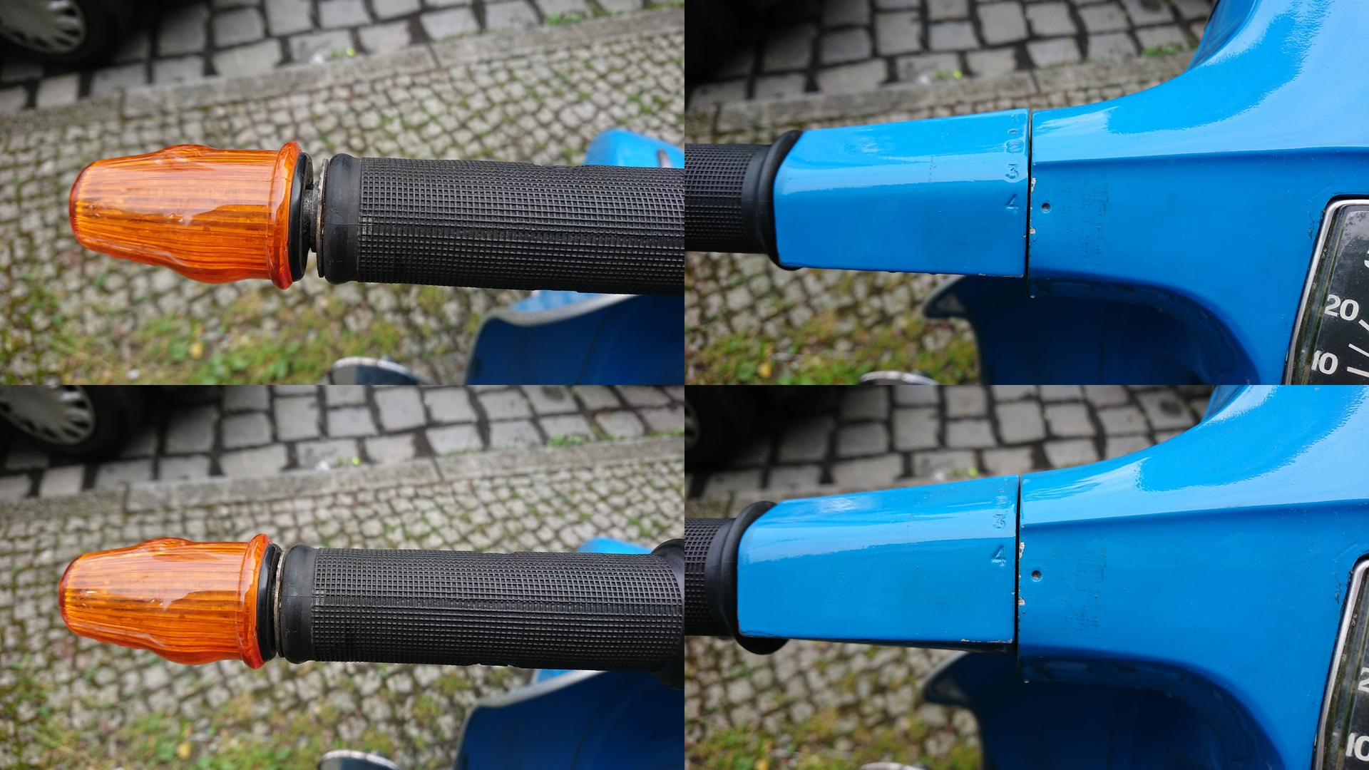 Nach etwas Fummelei beim Zusammenbau saß das Innenrohr wieder. Schaltversuche durch alle Gänge beim Schieben der Vespa waren erfolgreich. Meine erste Probefahrt zeigte aber, dass das Problem mit dem Runterschalten aus dem vierten doch noch nicht gelöst war. Alle anderen Gänge schalteten tipp-topp. Also nochmal geguckt, ob Schraubnippel an der Schaltraste fest etc. Trotzdem blieb das Problem. Bei einer weitere Testfahrt konnte ich sehen, dass sich das Innenrohr im vierten Gang bei der Fahrt leicht nach aussen verschob und ich nicht mehr runter schalten konnte. Nachdem ich den Blinker samt Rohr wieder den einen cm nach innen schob, ging es wieder!