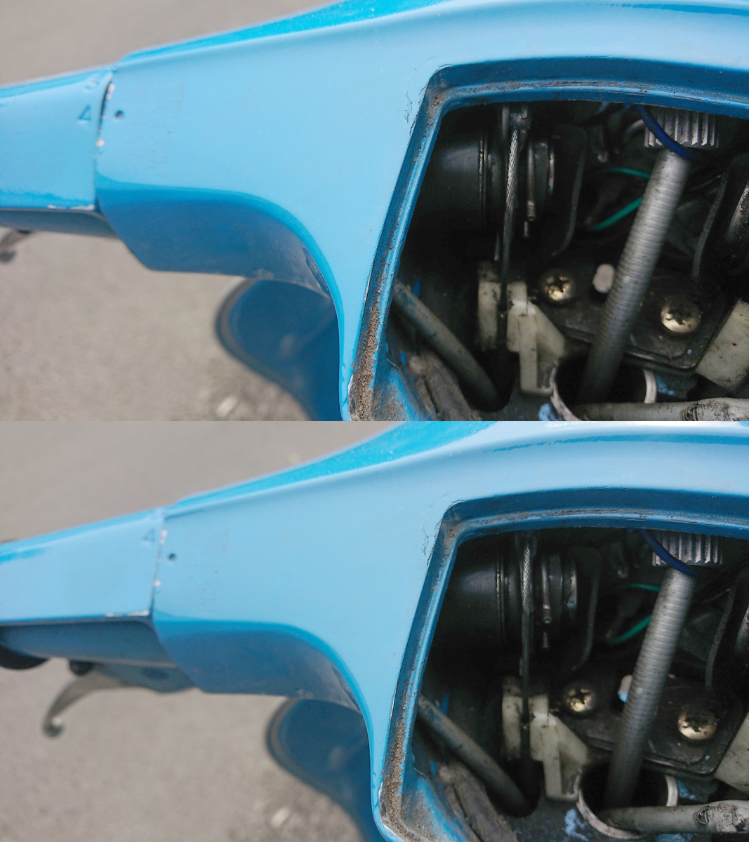 Der Vollständigkeit halber hier noch Fotos vom offenen Lenker, wo selbiges zu sehen, wie bereits beschrieben.