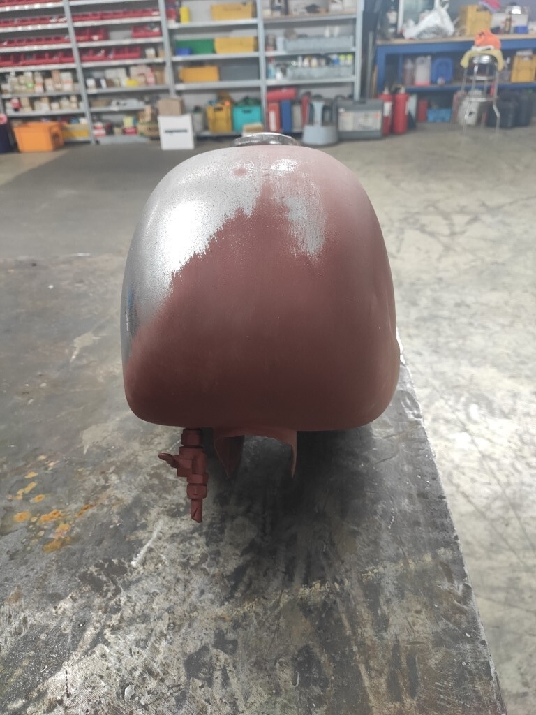 Dank Ebay-Kleinanzeigen hab ich dann nen besseren Tank bekommen. Leider hat ein Vorgänger sich die Mühe gemacht und den Chrom abgeschliffen :wacko: