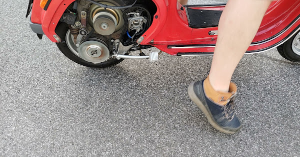 Sie springt beim zweiten Kicken und tuckert schön im Stand. Einen Estarter hat sie nicht, aber eine Batterie, 12V und Blinker. Kommt mir von meiner PX bekannt vor.